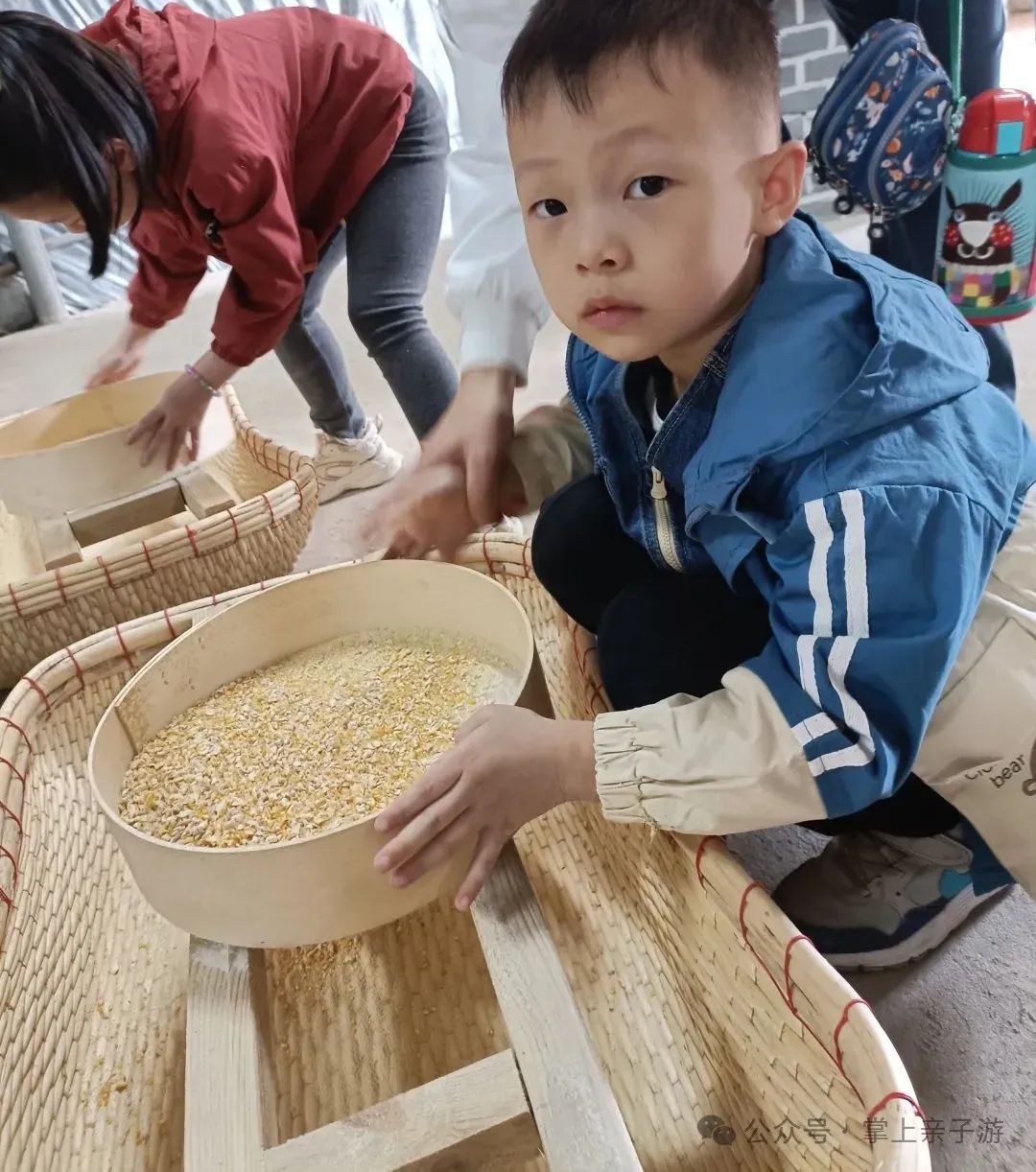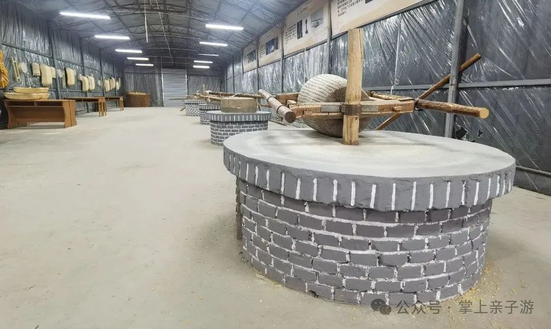 农事体验区占地800多平,这里有五台大型石磨,该项目体验过程中,孩子们可以脱粒、齐心协力推磨磨面,过啰啰、过筛子,见证麦粒到面粉转化的神奇过程。