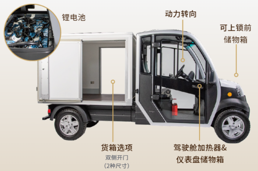 全铝合金底盘,高强度、抗锈蚀,使Club Car UV系列更坚固耐用,适用于度假村、机场、酒店、住宅区。