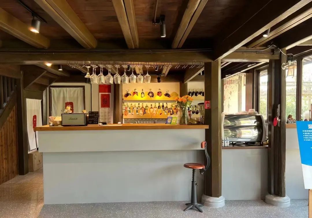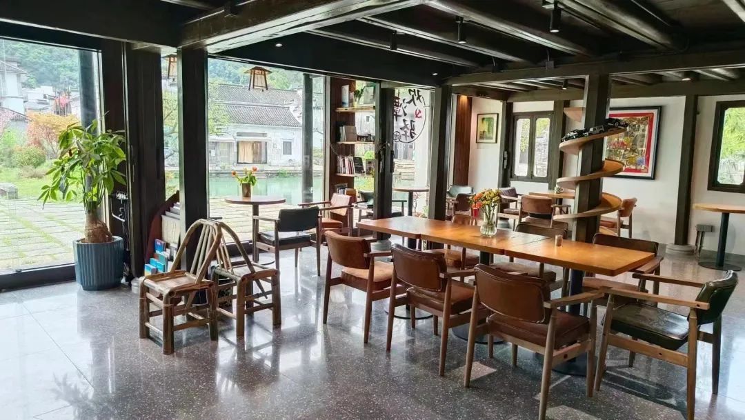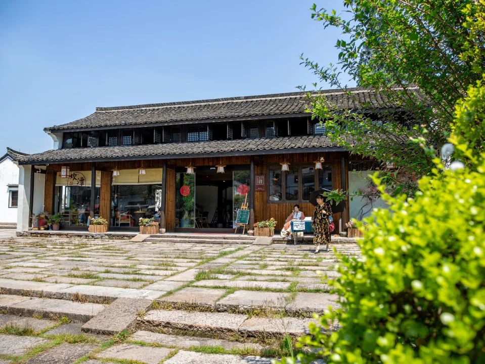 “欢禧”民宿是通过产业招引,吸引本村的年轻党员、镇新联会秘书长傅女士回乡创业的典型,这里不仅是一个精品民宿,也是一个集党建引领、便民服务、文明引导为一体的红色驿站,是欢潭“两进两回”的代表。其中前厅欢禧咖啡屋前身是江南织造厂,经修缮活化利用而来,现成为“隐居”在古村中的网红咖啡馆。