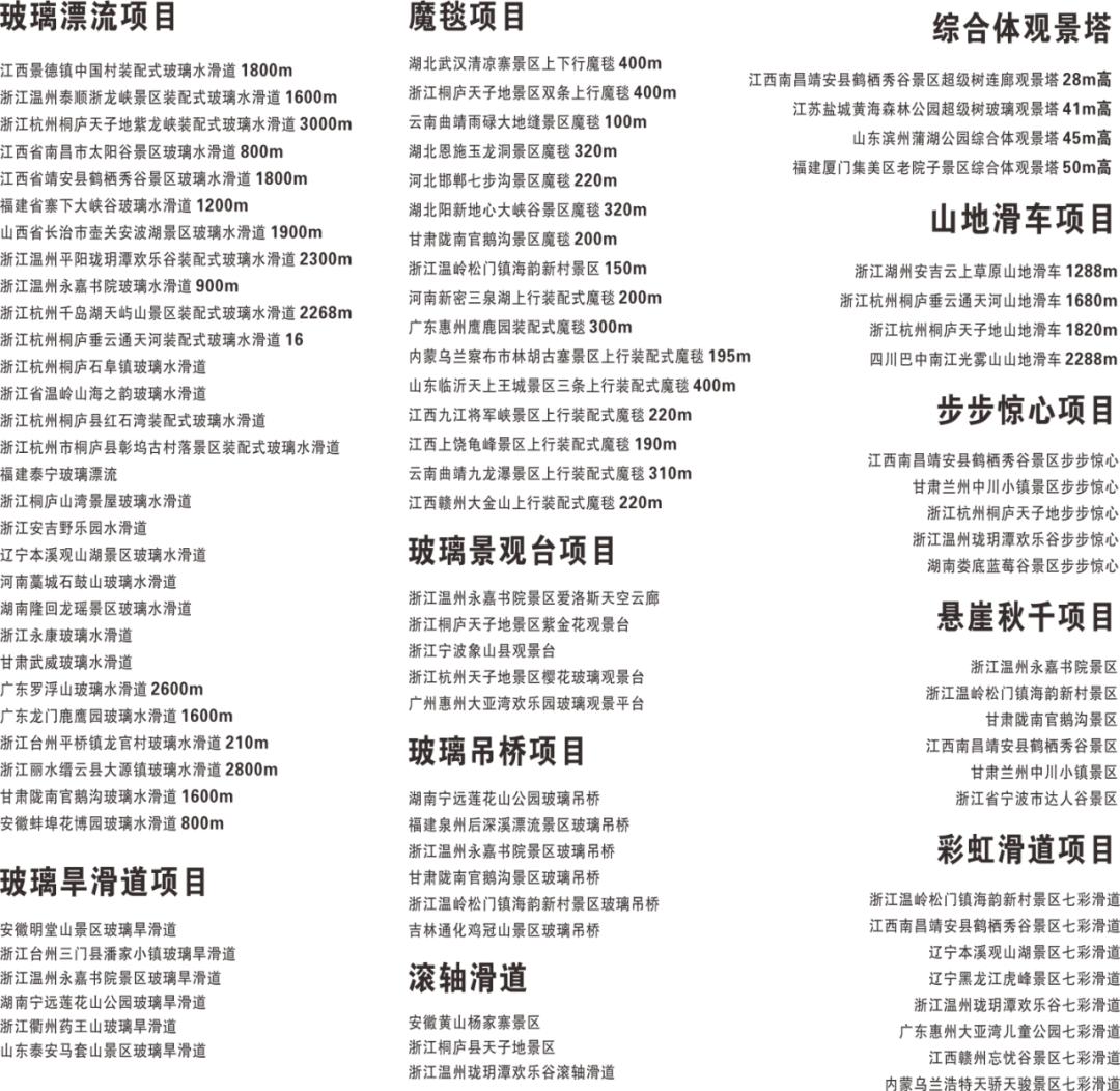 2017年:投资建设华东地区第一座玻璃悬廊,高差320米;浙江台州平桥镇龙官村水滑道由大齐设计承建,是全国首条转盘水滑道;