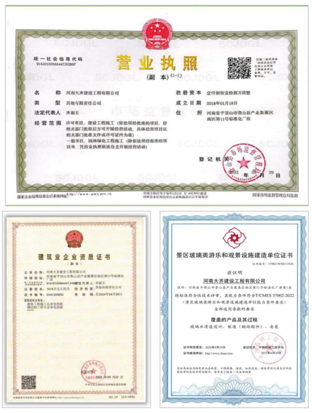 2022年:国标玻璃水滑道国标委员会秘书长单位、河南省游乐设施副会长单位同年7月首创国内第一条凌空式山地滑车。