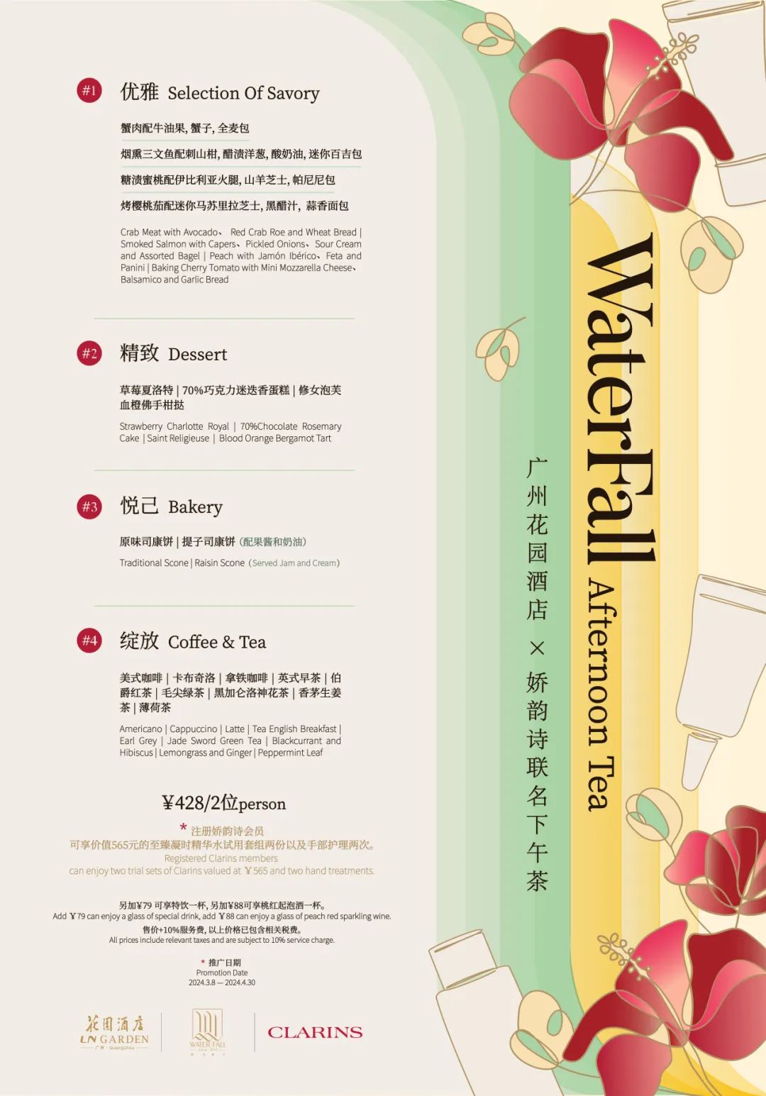 萃自然之美丨广州花园酒店 x 娇韵诗Clarins联名限定春季下午茶优雅呈现
