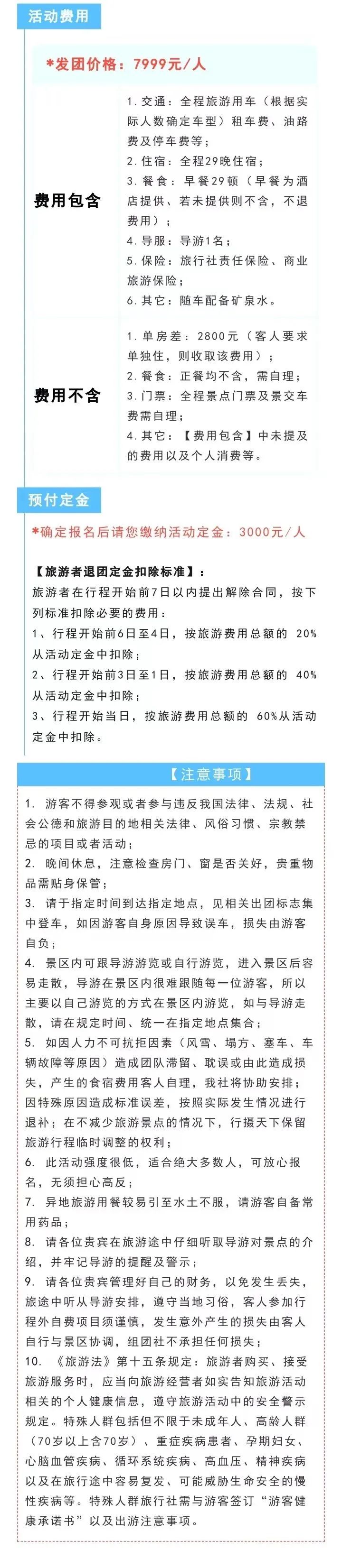 您现在的位置是:首页 > 国内旅游目的推荐 > 正文 国内旅游目的推荐 如果有30天的超长旅行,你会怎么走? admin2024年03月10日 20:33:10国内旅游目的推荐98 在我们漫长的一生,很少人有一个超长且轻松的假期。我们已经厌倦了五一、十一、春节等节日高峰的旅行。如果你有时间,完全可以选择一个人少、风景美,休闲的线路。一个月的超长时间旅行还不及三亚的一张机票。你想有这样的旅行吗?下面这条线只属于有大把时间的人,一路风景堪称天花板。活动时间:2024年5月6日-6月4日价格:7999活动亮点:全长11600公里主打一个刺激。领略中、俄、哈三国风光;参团客人每人赠送20张精修照片+30秒短视频,全程无购物!本线路接受个人或家庭定制成团更多详情咨询:联系人:老狼手机:18523507586识别二维码,添加老狼微信咨询近期自驾行程:新春第一拍!3月去川西怎样才能感受极致魅力?春天去哪里最美?这里来过一次就忘不了春天的西藏不只有林芝,这条线路太美了!狼族摄影团游记:川西的深秋有多美?刚拍的100张照片告诉你拍贡嘎,谁才是最佳拍摄机位?这才是去川西的正确打开方式怎样才能看到最美林芝,不留遗憾?我的川西:仅有美景是不够的有一趟旅行,比梦想的还要精彩老狼环贡嘎深度摄影报告!99次旅行不如1次穿越10月的川西该是什么样子?一个未开发的川西处女地跟老宋看不一样的尼泊尔!进西藏为何都选318?想没想过挑战317? 转载请说明来源于"旅荐网",部分内容转载自网络,如有侵权请联系qlwl@foxmail.com删除 本文地址:https://www.15386.cn/post/19678.html 上一篇 东弘旅游——3月西藏 下一篇 178元带你玩转攀枝花周边一日游!(包含一人座,两餐,保险) 相关文章 浙东轻旅行攻略️宁波出发4城随心玩 新疆旅行攻略:四条经典线路,带你领略南北疆的极致风光与人文 五一小长假丨新东方文旅亲子旅行攻略 丽水自驾旅游攻略 泰国泼水节旅游攻略2026年郑州出发 千岛湖免票攻略|4 个时段 17 家景区全免费,省钱玩到爽 湄洲岛保姆级旅游攻略,带上你的搭子一键Get 东极岛蓝眼泪两天一夜旅游攻略(全干货) 涠洲岛荧光海两天一夜旅游攻略(沉浸式) 原创||四川旅游攻略 发表评论 取消回复 评论列表 这篇文章还没有收到评论,赶紧来抢沙发吧~