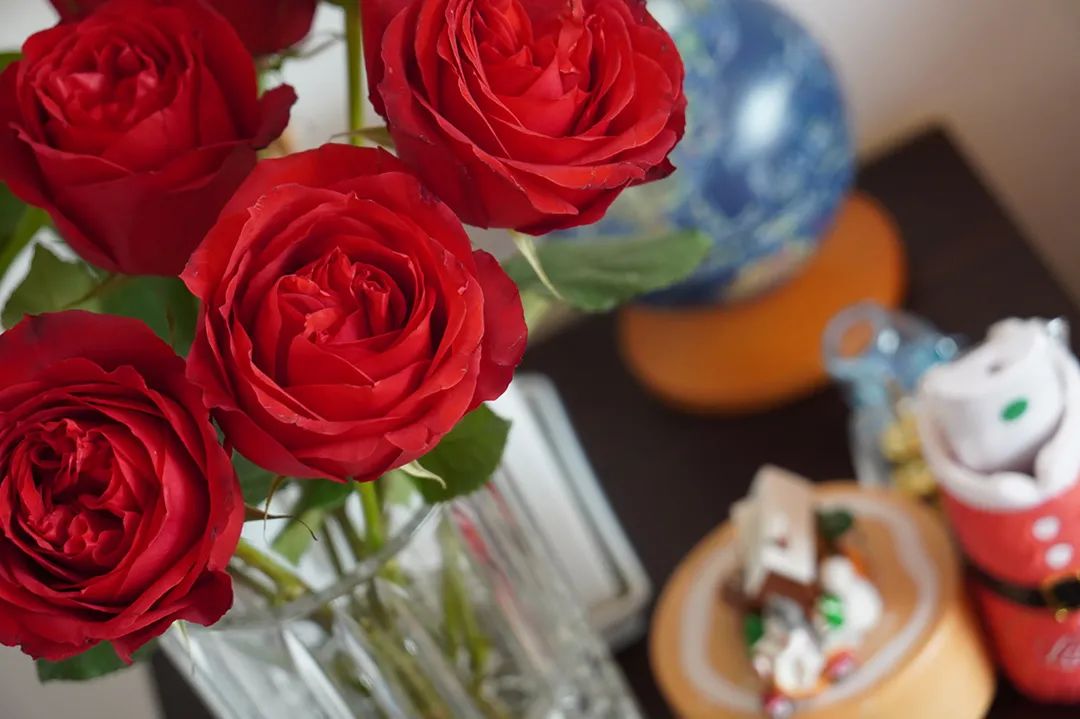 它的殷红与玫瓣的娇艳欲滴