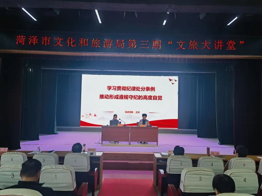 您现在的位置是:首页 > 国内旅游目的推荐 > 正文 国内旅游目的推荐 市文化和旅游局举办第三期“文旅大讲堂”活动 admin2024年03月10日 20:35:04国内旅游目的推荐122 菏泽文化旅游点击上方蓝字关注我们吧!关注3月8日,菏泽市文化和旅游局举办第三期“文旅大讲堂”活动。市文化和旅游局党组书记、局长杨东波出席活动。活动中,局机关党委专职副书记、四级调研员王沛以《学习贯彻纪律处分条例 推动形成遵规守纪的高度自觉》为题,从《中国共产党纪律处分条例》修订的历史沿革、修订《条例》的重要意义、《条例》修订的丰富内涵等三个方面,对最新版的《条例》进行了详细解读。市文化馆馆长、支部书记张伟胜,局机关党委张君两位同志结合工作实际发表了课堂感想,市文化和旅游局党组副书记、副局长白凤兰就如何切实增强思想自觉、政治自觉、行动自觉,着力推动市直文化和旅游系统全面从严治党向纵深发展提出意见。菏泽市李荣海美术馆馆长曹宾义以《艺术为人民—菏泽市李荣海美术馆在公共文化服务体系建设中的工作经验分享》为题,介绍了李荣海美术馆的全面工作。局办公室主任牛晓桂、市美术馆副馆长吴林结合授课内容谈了对公共文化服务工作的心得体会,市文化和旅游局党组成员、市地方戏曲传承研究院院长徐向东对李荣海美术馆的下一步工作提出要求。市直文旅系统县处级以上领导,局机关全体工作人员,局属各单位中层以上干部参加了大讲堂活动。供稿:办公室时光荏苒,陪你走过线索征集已开始!菏泽市全面启动第四次文物普查工作菏泽一景区推出免票、半价福利!600年历史!菏泽“活”起来的古村落正在“火”起来!-菏泽文化旅游-点点 转载请说明来源于"旅荐网",部分内容转载自网络,如有侵权请联系qlwl@foxmail.com删除 本文地址:https://www.15386.cn/post/19685.html 上一篇 夕阳里的徒步旅行者 下一篇 热烈祝贺乐村·兴茂康养旅游度假区兴茂踏春游-南川水江中学校3.8节主题活动圆满成功!!! 相关文章 文化和旅游部启动全国优秀旅游规划案例遴选工作 西安三天两夜旅游攻略不绕路版 用AI做旅游攻略 已到苏州,很适合玩3天,旅游攻略替你做好 跑马不赶路!这份跑马+旅游攻略,周末&小长假都适配 旅游路线已经为您规划好,赶快来看看吧~ 大理两三日游旅游攻略(综合多篇攻略版) 湖北恩施三天两夜旅游攻略 冬季旅游指南丨十三师新星市一日游攻略来啦,快来收藏打卡吧~ 宜良小白龙火车集市旅游攻略 发表评论 取消回复 评论列表 这篇文章还没有收到评论,赶紧来抢沙发吧~