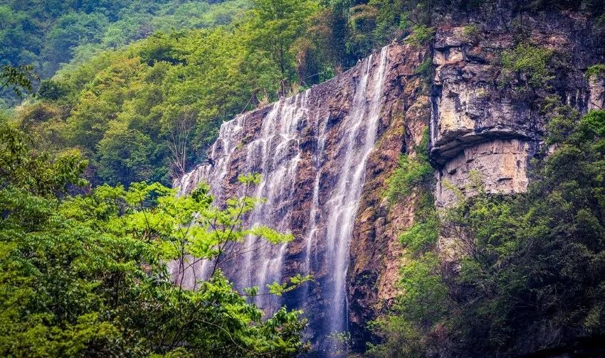 三峡大瀑布景区,原名白果树瀑布,位于湖北省宜昌市夷陵区,是一个集峡谷、溶洞、山水、化石文化为一体的国家级地质公园。