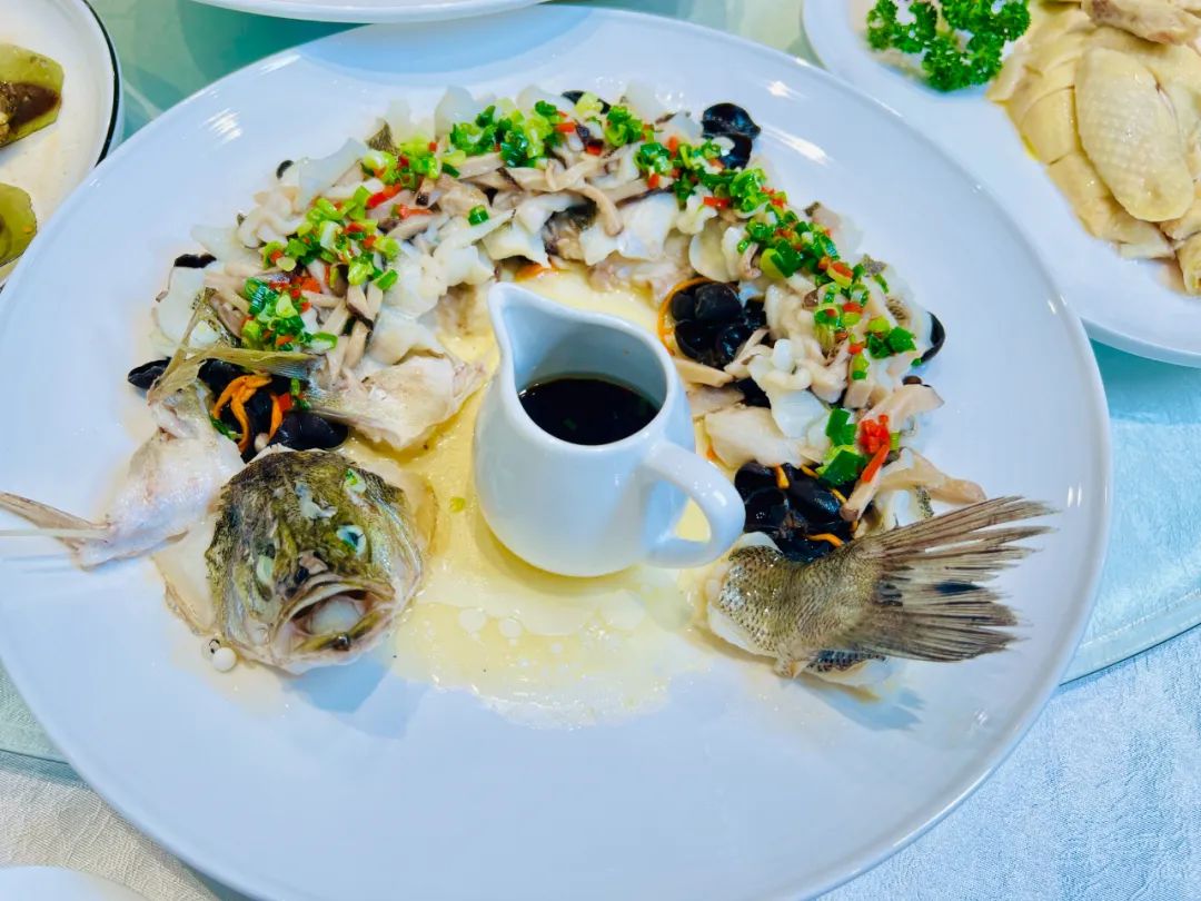 古法蒸海鲈鱼鱼肉入口即化,酱汁浓郁醇香,夹一块沾满了酱汁的鱼肉塞入嘴里,鲜味瞬间充盈整个口腔,伴随着鱼的清甜,好吃到停不来~