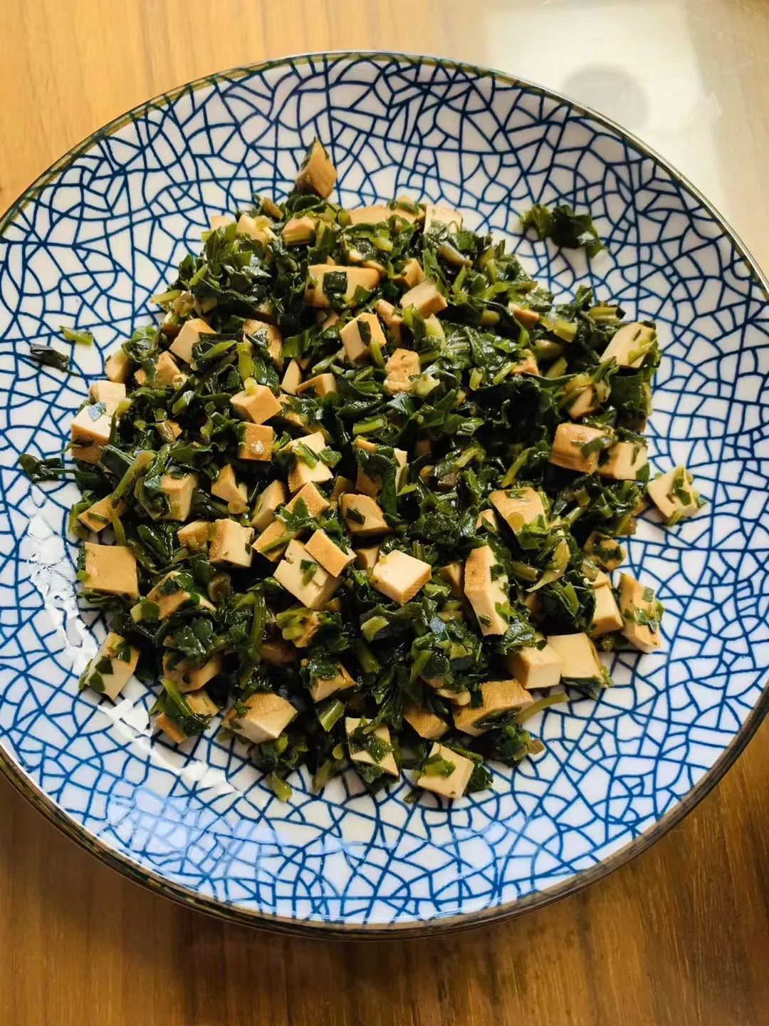 镇江人吃马兰头,就是越简单越新鲜。最常见的吃法就是和香干一起切成末凉拌,加些花生碎和麻油一拌,就是一道很好的下酒菜。