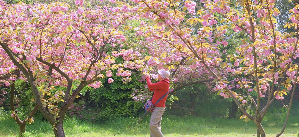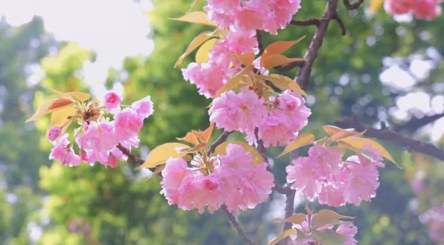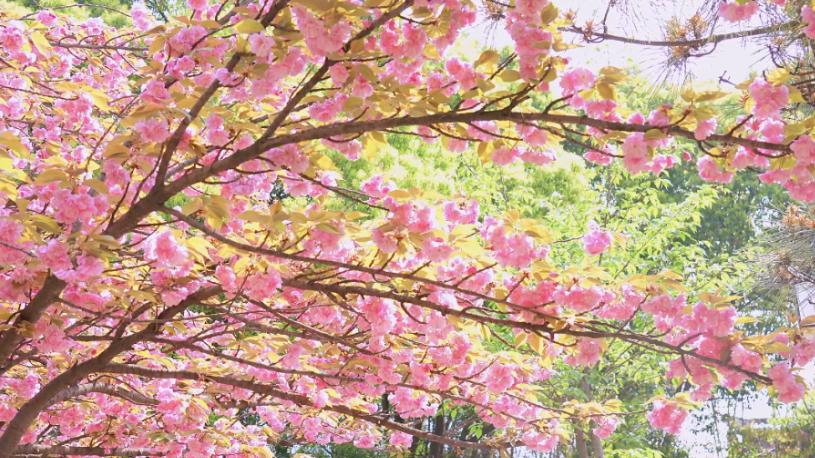 微风拂过,从枝头洒落的粉色“樱花雨”