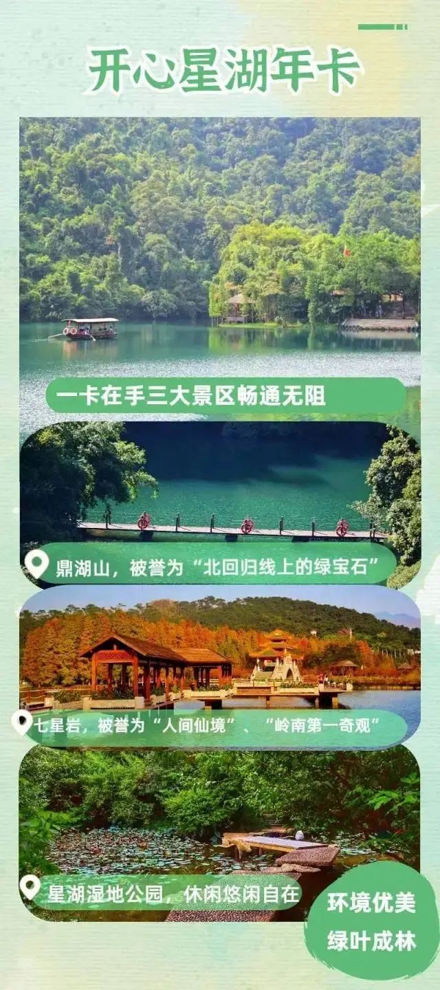 (该卡激活后可进入七星岩、鼎湖山、星湖国家湿地公园三个景区,一年有效)