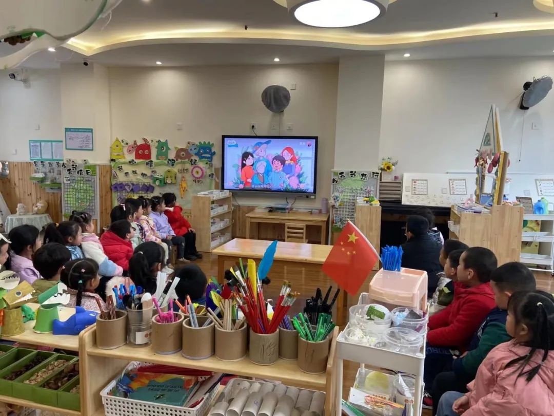 伴随着升旗音乐的响起,小护旗手们护卫着鲜艳的五星红旗,在全体师幼的注视下,踏着整齐的步伐,守护着鲜艳的五星红旗一起入场。