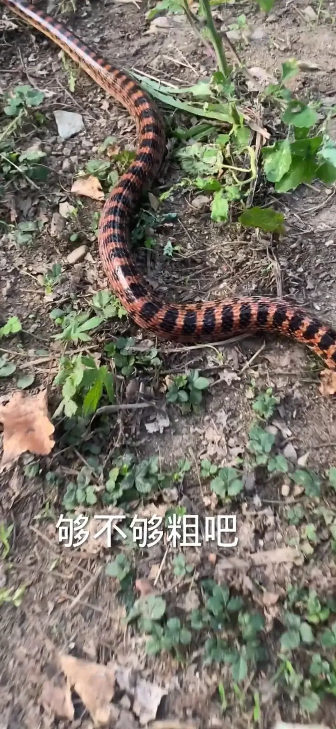 尾巴很尖,这样的模样,大家说是不是毒蛇呢,这蛇的体型并不大,也就有个一米多长,重量在两斤多,