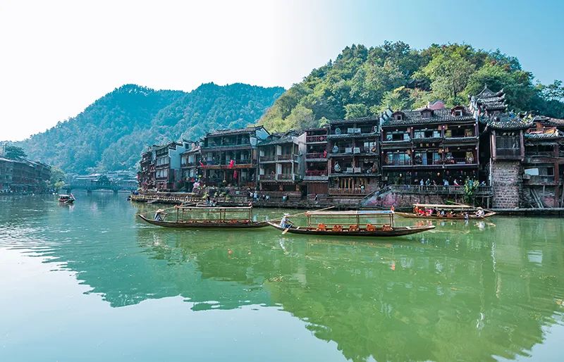 凤凰古城依山傍水,布满山坡的吊脚木楼绽放湘西的古韵,静谧清浅的沱江缓缓流淌,红色砂岩砌成的城墙伫立在岸边,南华山衬着清朝年代的古老城楼,锈迹斑斑的铁门,斑驳的裂痕,依稀辨得出当年威武的模样。