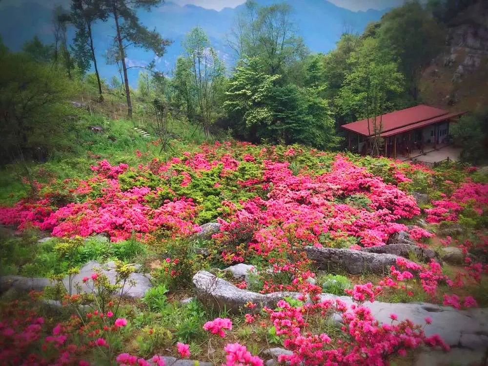 辛夷花是药王谷最著名的药花,成片的辛夷花和依山成势的野花次第开放。