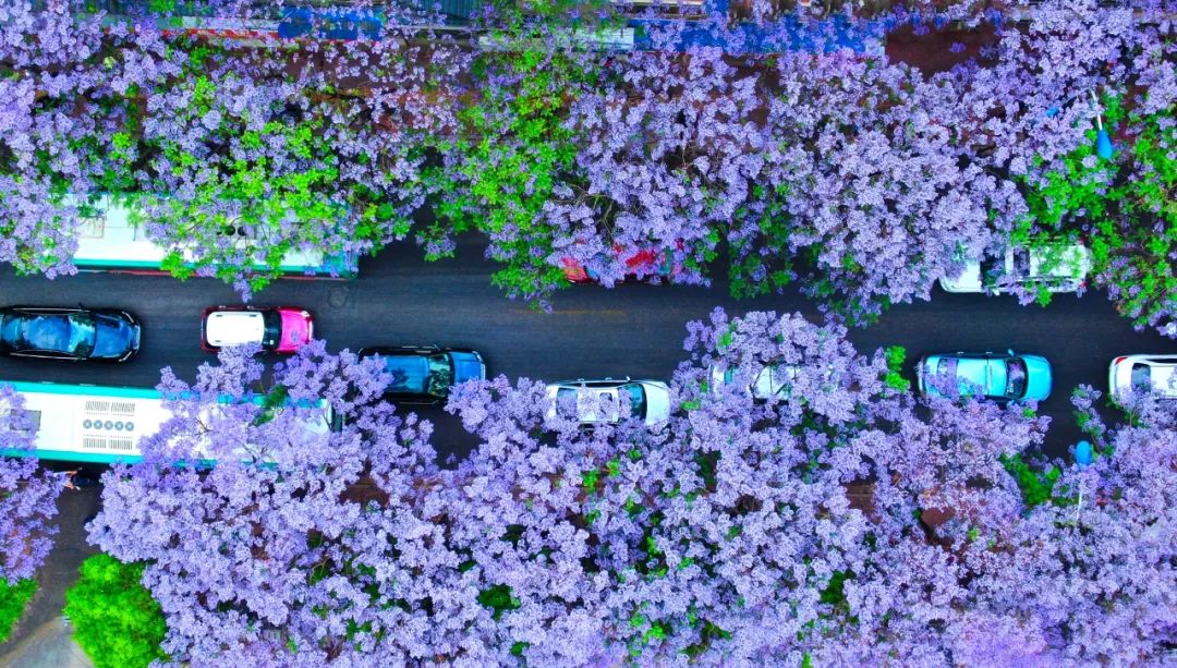 尤其是被称作是春城的昆明,一到春天,整座城市就成了紫色的海洋,梦幻十足。