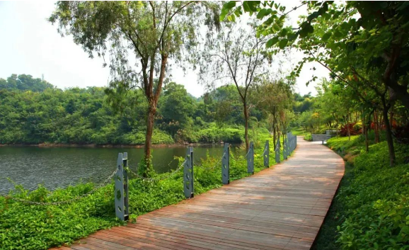 还可以选择自行车、滑板车、休闲自行车,沿着湖边的1.7km的栈道骑行,也可慢跑或散步,一路走到白玉观音小公园,享受这繁忙工作之余的那一片宁静。