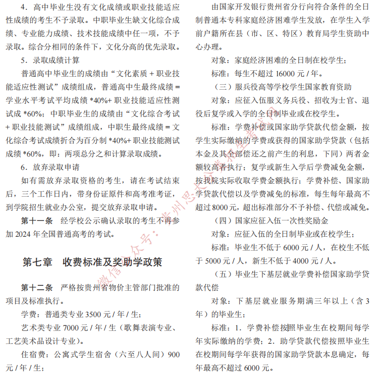 贵州文化旅游职业学院2024年分类考试招生简章(考试院版)