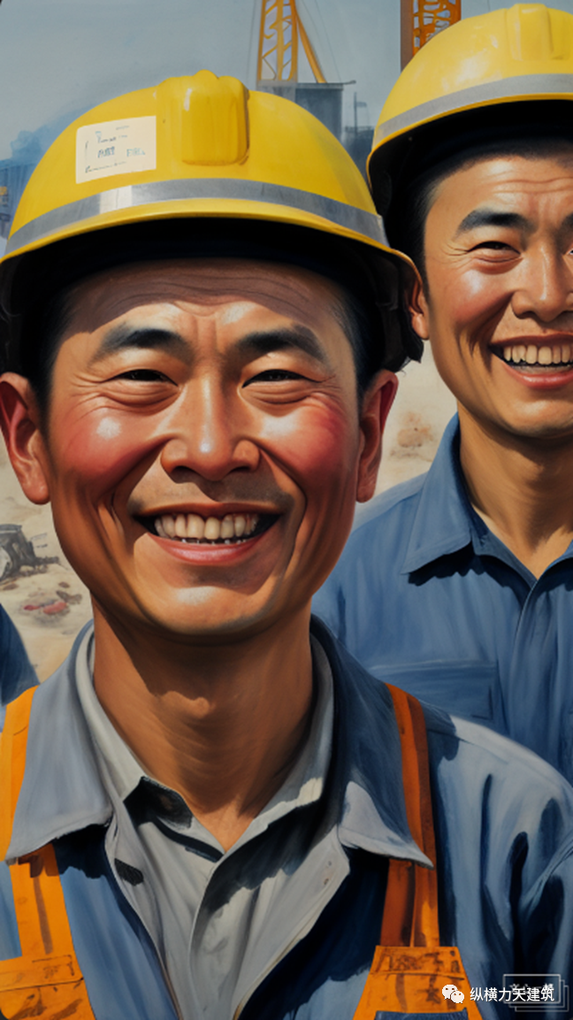提示工程:工地场景,人物中,多个人物工装,微笑,远镜头,最佳画质,高品质,杰作