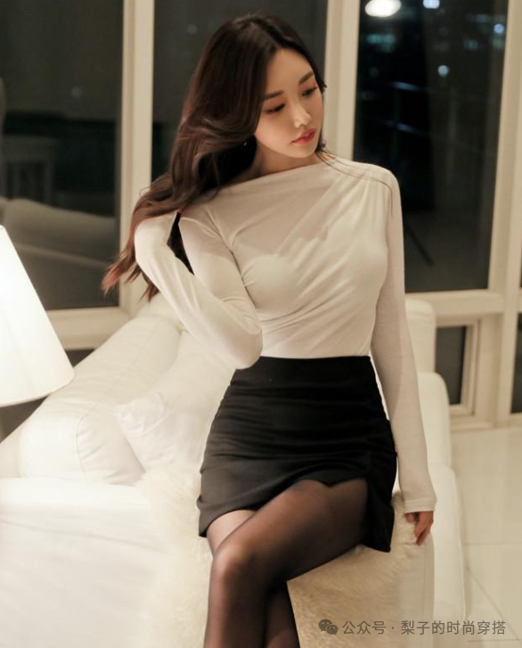 白色的紧身长袖上衣在她身上展现出纤细的曲线,仿佛定制般贴合她的身形,为她的整体造型增添了一份清新与纯洁。与此同时,下身的黑色超短包臀裙则展现了她大胆的一面,勾勒出诱人的臀部曲线,让人不由得回味无穷。这样的搭配使得她即使在白天的光影中,也如夜晚的星辰一般璀璨夺目。