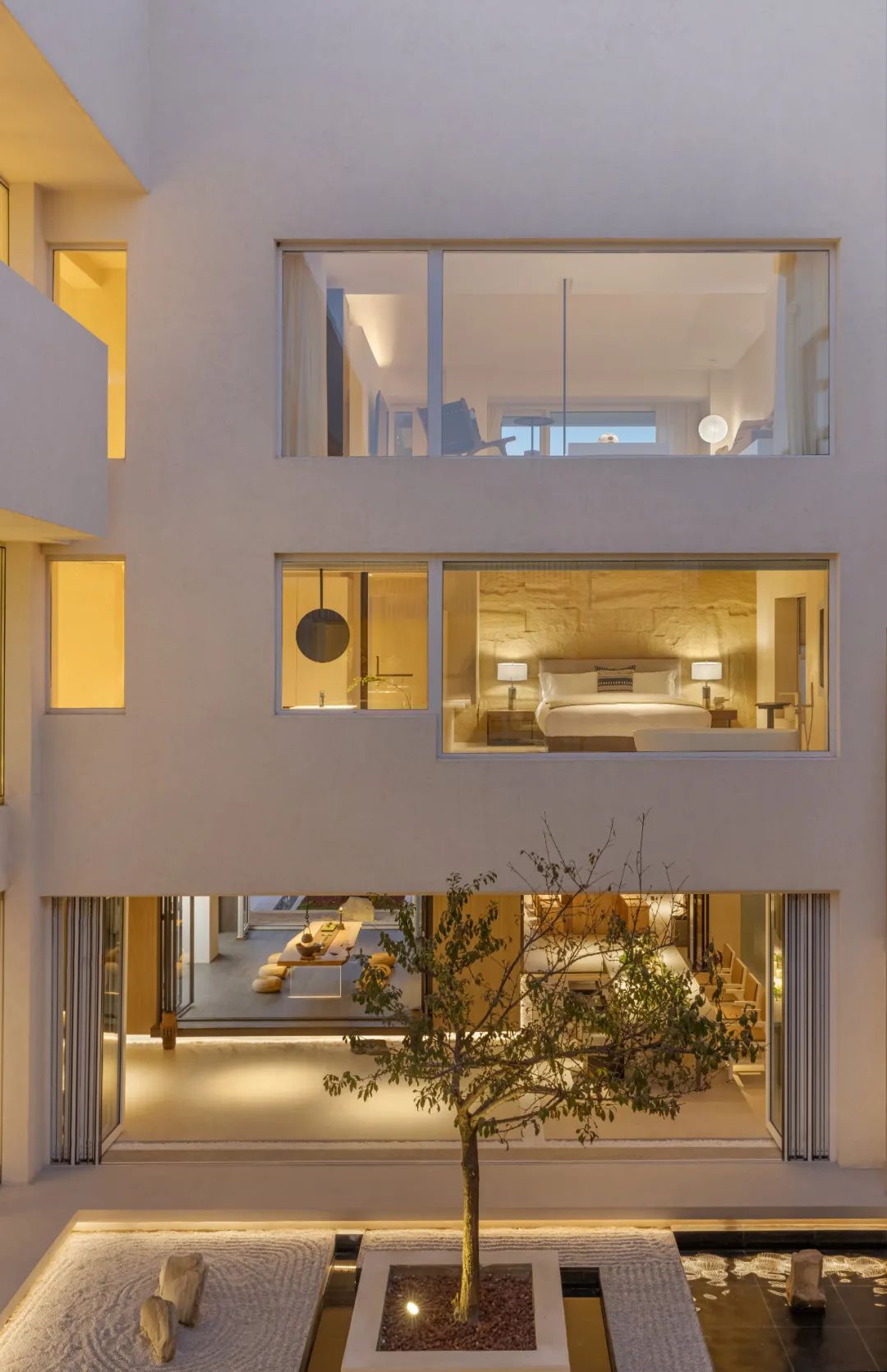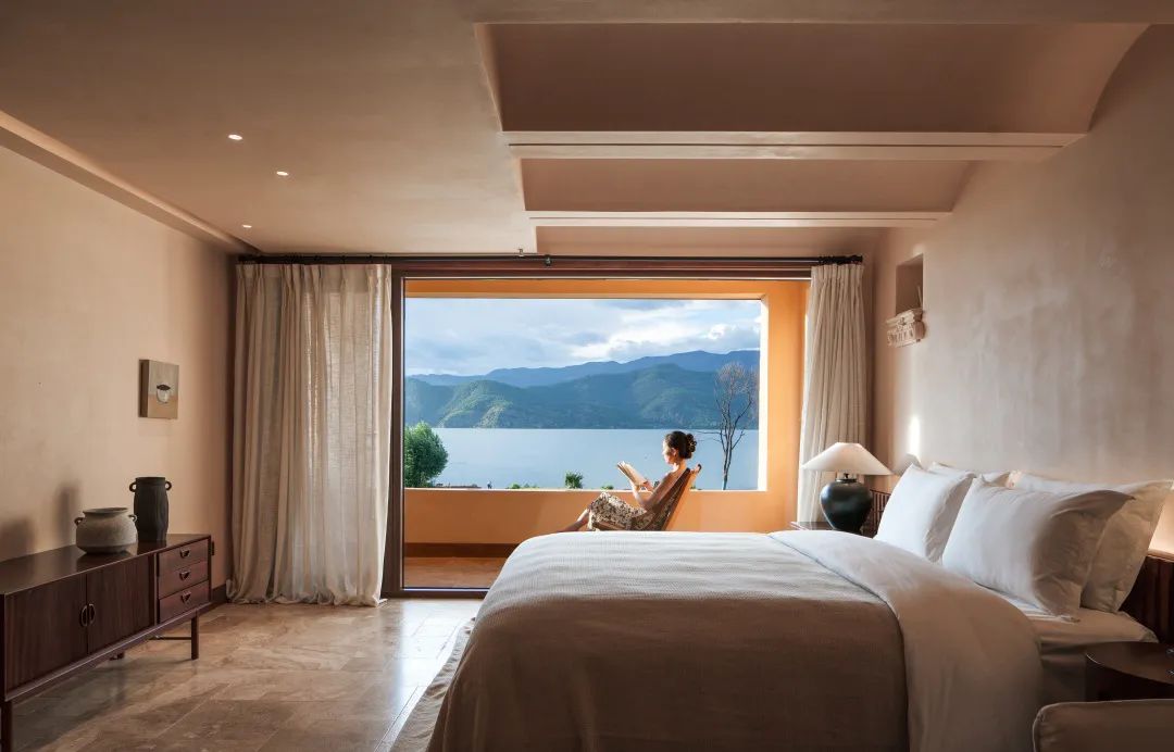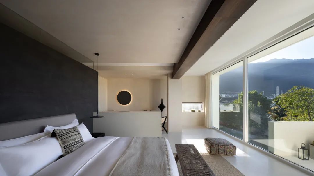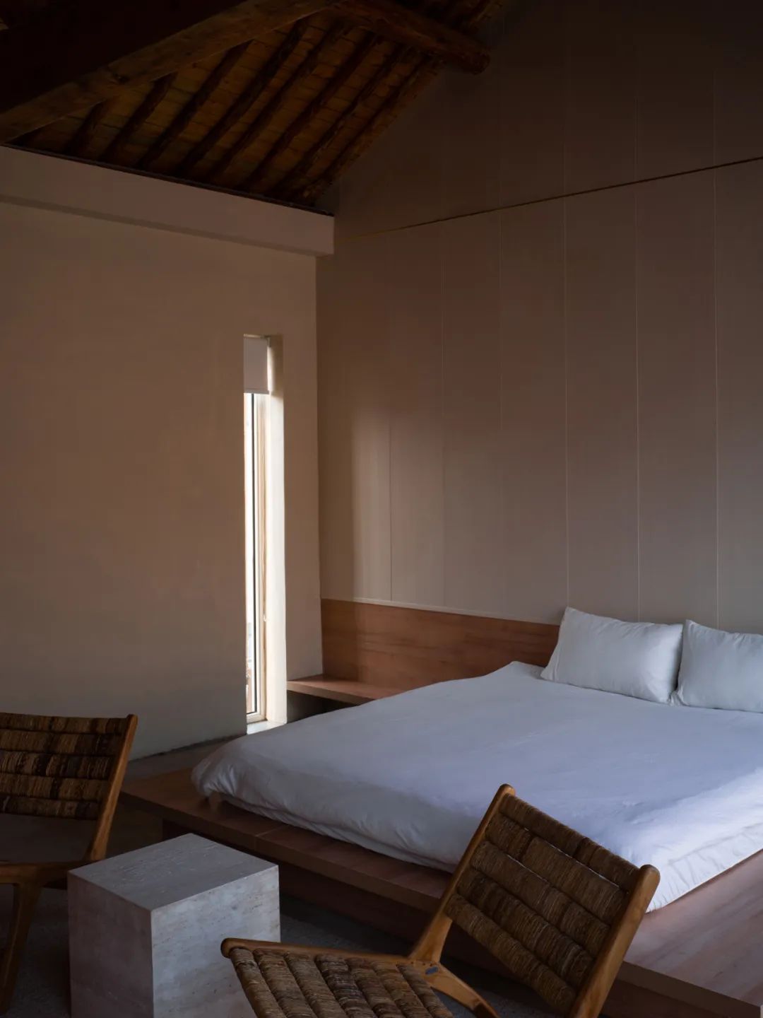 、苏州太湖三山岛,因其被三座小岛环绕而得名。出入小岛通常需要轮船作为交通工具,让这座岛屿有着一种与世隔绝的气息。呼梦集选址于此,希望这里存在着另一种时间,让远道而来的客人拥有全新的体验。在主体建筑空间的设计中,建筑立面取意于当地最具特色的太湖石,交错重叠的意向如石头一块块地堆积。片墙的建筑手法,弱化原本传统的斜面屋顶,整体建筑保持极简流畅的线条感,进一步提升空间的自然与纯粹。从室外到室内,入口的设计让行走的过程中充满仪式感。顶部采用波纹钢板营造出岛上水面的效果,暖光灯带模拟日出的光感。湖中的船与撑船杆构造的块面像一件艺术装置。在客房设计中,设计师从民宿运营角度出发,针对不同房型与海岛元素做结合。让住客在这里能够体验到不同的海岛生活场景,空间的意义不再因为距离而变得局限。秋山酒店项目位于泸沽湖景区蒗放码头的环湖路上,临水而居,在美丽的泸沽湖边,面朝格姆女神山。酒店运用原木、黄铜、皮革等元素,去除不必要的形式主义,回归物本身的质色、功能,毫不做作的复古质感,以满足人们对物质精神的追求。以独有的中古风格设计,为过往的旅人打造一间慵懒、舒适的休憩之所。在秋山,安住、小酌,临水而憩,读无用之书,醉无心之景。一览无余的临湖景致,暖红色外墙涂料,仿佛是从土地里生长出来的建筑。3层、6间房、广阔且多元的景观视野,秋山的设计超然于当地民宿及酒店利益驱动的逻辑外,自得一种画境人生。比起规整、干净到冷清的、没有情绪温度的空间设计,那些充斥对生活的爱意与热情,情绪饱满的空间更加打动人心。大理文笔村,位于洱海东侧,与大理古城隔海相望。村落临海依山而建,房舍随着山势铺开,错落有致。相较于烟火热腾的古城,这里静谧悠然,有着绝佳的海岸线——大理的蓝天碧海、云卷云舒、苍山茂林、飞鸟落霞......尽收眼底。与其说空岛・半山是一间民宿,倒不如说它像一座缓慢呼吸的纪念碑,纪念的是认真生活、认真对待自我的每一个瞬间。为了尽可能地凸显自然之美,设计师采用了非常质朴的设计手法。建筑外部从大理白族民居的建筑风格中汲取灵感,将白色立面和灰色屋面巧妙糅合,保持建筑整体利落简洁的几何感,佐以柔和的曲线元素,不炫技,却又不失饶有趣味的韵律感。进入建筑内部,却是与极简外观有着微妙反差的活泼氛围。由外入内的惊喜体验,就像打开一个包装朴素的盲盒,让人眼前一亮,心生欢喜。在酒店的公区,设计师采用了不同层次的绿色和暖色的低饱和色彩混搭,原木、金属、丝绒、亚麻、水磨石、绿植等丰富材质以恰到好处的比例组合,让空间呈现出不流于俗的品味,处处彰显着精致而又温馨、随意、亲切的生活感。酒店只有7间客房,采用景观露台-景观浴缸-卧室-洗手间的纵深式布局,将苍山洱海巧妙地“引入”建筑内部。在窗户的处理上,设计师摒弃了大理很多大面积落地窗的做法,采用水平长窗的设计手法。这样的做法,限制了窗户露出的尺度,遮挡多余视线,反而赋予窗外风景更多的力量。大理古城位于苍山之下,毗邻洱海,被山与海的美丽景色相互环绕,让这座城市充满了独有的文化风情。主理人苏苏是土生土长的白族人,扎根于此,对这片土地有着深厚的热爱,因此特别邀请设计师沈墨与张建勇共同打造了一家充满情怀的设计师酒店。设计师在分析原始建筑结构后,通过拆解重组生成新的建筑体块。按楼层进行功能划分,规划出地下停车场、地下室、公共空间,客房以及屋顶花园。酒店取名为白平衡,寓意着遵循与自然的平衡与默契,建筑与自然相互共生,在这片天地间自由生长。建筑外立面用白色涂料进行包裹,隔栅做装饰,与不远处的苍山美景交相辉映,犹如一片从苍山飘落下的雪花。十间客房均融入了当地的元素,扎染工艺、雪山风景、溶洞等景观。让室内与室外互相对话。项目选址于莫干山核心景区内,原址为莫干山328号,位于莫干山制高点,依山而建,由一栋现代建筑与一幢全国文保老别墅融合而成。酒店名为“一粟”,取苏轼《赤壁赋》“沧海一粟”之低调形意,亦是其所传递的一种人生主张 —— 历经浮世喧嚣,归来山间,轻简如一粟,万物依旧。酒店为山地建筑,接待区顺着山势设在最高层。客人抵达后,首先进入顶层接待区。自制的铜管按菱形排列、将复古灯泡从顶部矩阵吊挂,暗合建筑坡顶的几何图形。酒店一期共有4层,分为主楼、辅楼两个区块,两楼之间以回旋楼梯相连接。房间按色调分为木色、黑色、水泥色等几类,房型设计时充分考虑到家庭及朋友间的共同出游,在辅楼设置了别致的三房组团与双拼组团,每一层分别包含2-3个不同房型,整层预订。酒店设计中,结合莫干山悠久的历史文化,选用现代的材料和手法来体现民国时期的风情。