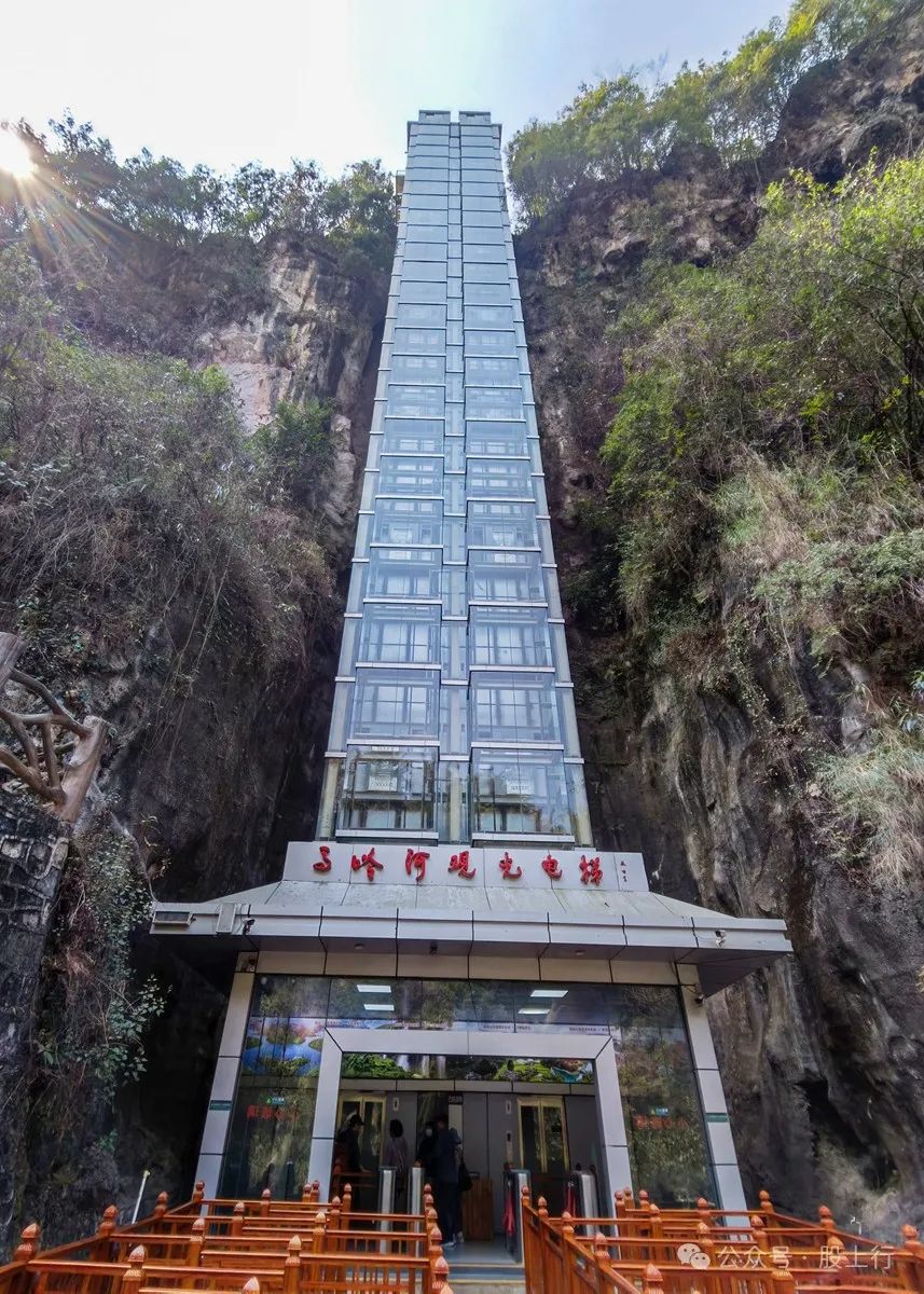 马岭河峡谷观光电梯高73.12米,从观光电梯直达马岭河栈道,往返40块大洋,免除了爬山的烦恼。