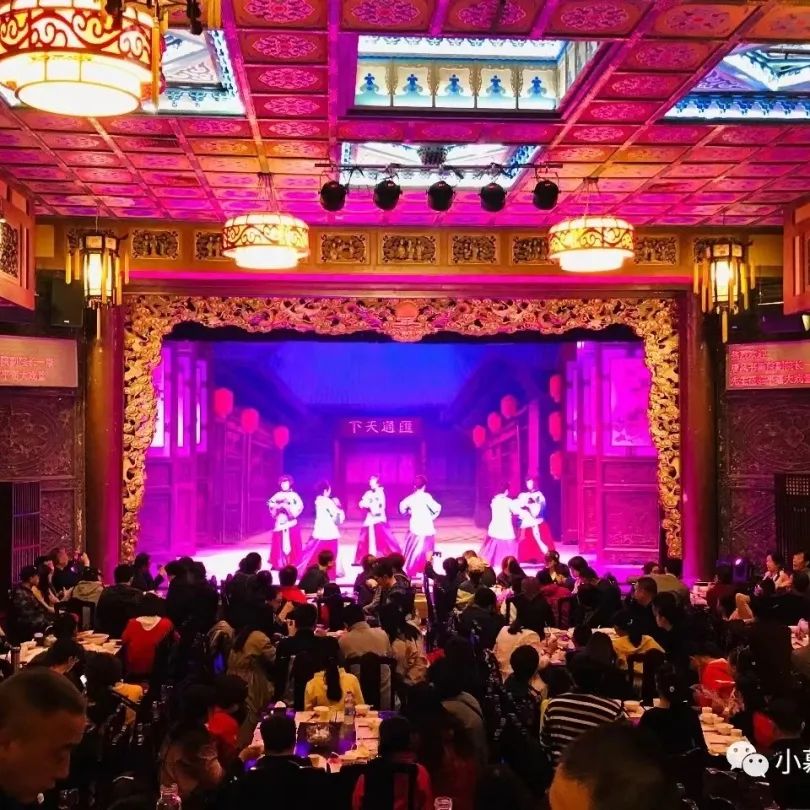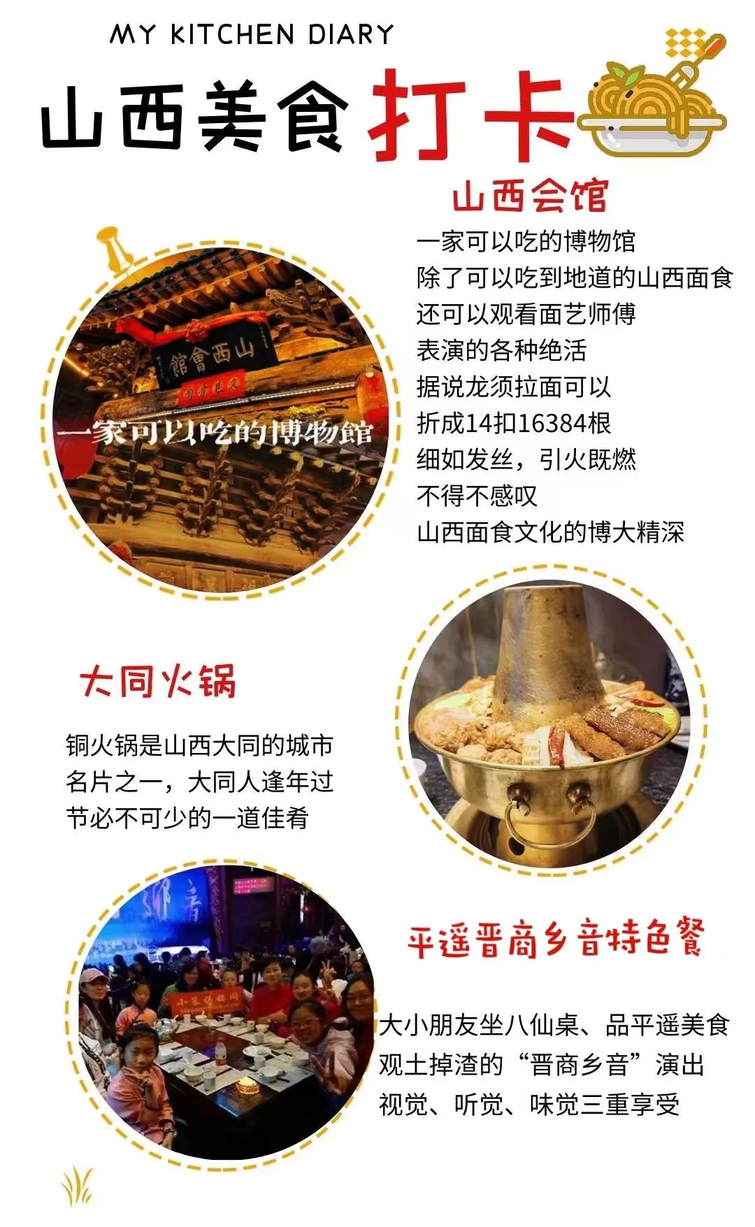 2、平遥大戏堂特色餐,大小朋友们围坐八仙桌、品平遥美食、观土掉渣的“晋商乡音”演出,视觉、听觉、味觉三重享受。