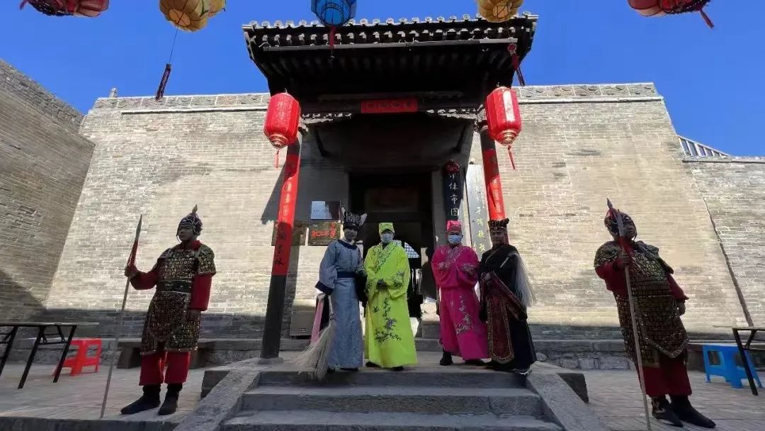 在张壁古堡观看情景剧《张府招婿》、《张壁选秀才》、舞台鼓等演出,之后乘车赴平遥古城。