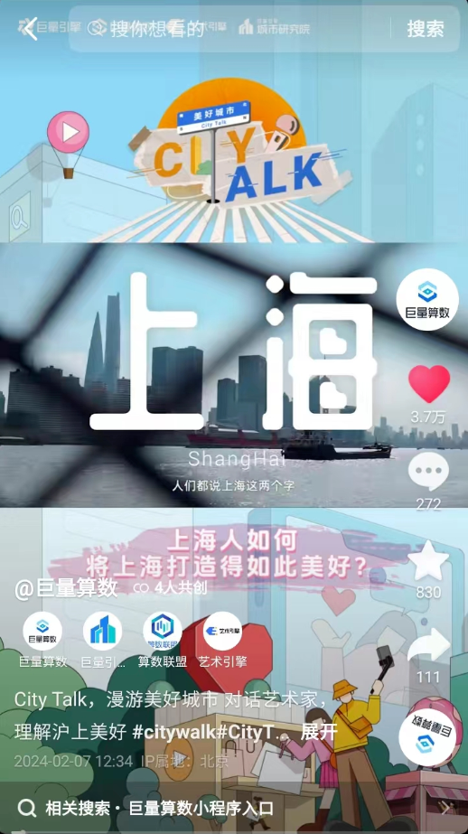 想起前几天,在抖音上刷到一则巨量算数联合艺术引擎拍摄的《City Talk》访谈栏目,这部片子从文化艺术角度切入,娓娓讲述了对上海一些细致入微的观察 。
