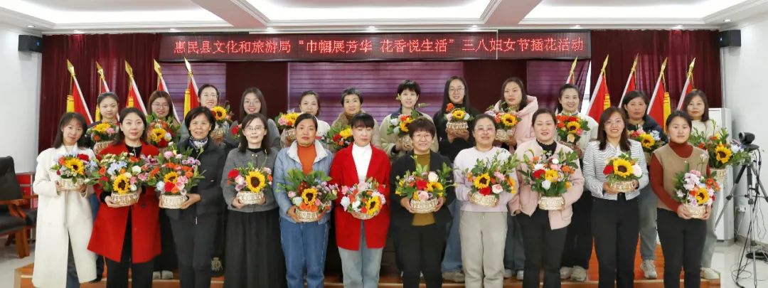 3月8日,惠民县文化和旅游局组织开展“巾帼展芳华 花香悦生活”暨“向阳花·心向阳”三八妇女节插花活动。县文旅系统全体妇女干部职工参加活动。