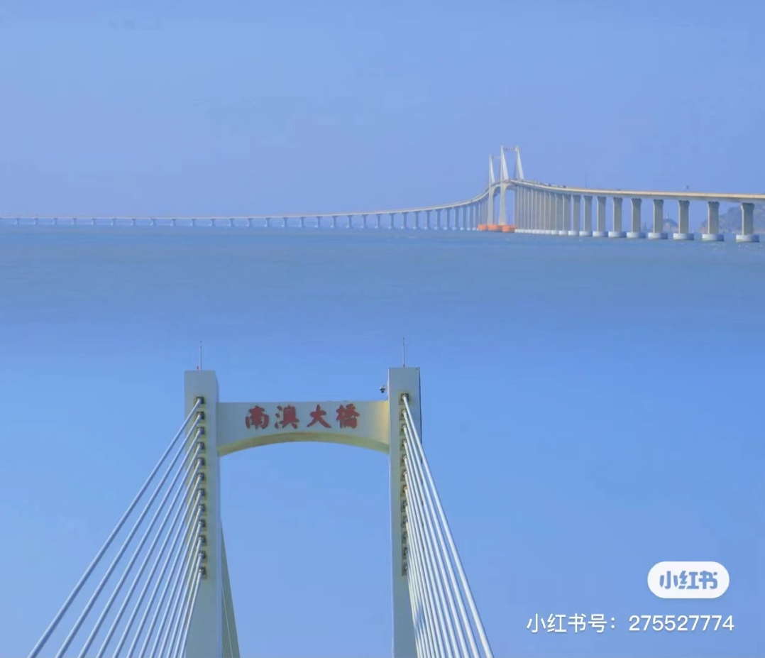 南澳大桥是连接广东南澳县和大陆的跨海大桥,主桥采用斜拉索设计,东西两个主桥塔共由48根斜拉索与桥面相连。主桥塔上悬挂着“南澳大桥”四个大字,字体则直接采用了电脑颜体字。全长11.08公里,全线采用二级公路标准,路基宽度12米,桥梁净宽11米。