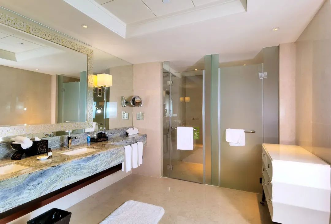 干湿分离的卫生间也获得不少好评。如果携带孩子入住还会贴心提供儿童洗漱用品拖鞋浴袍等。