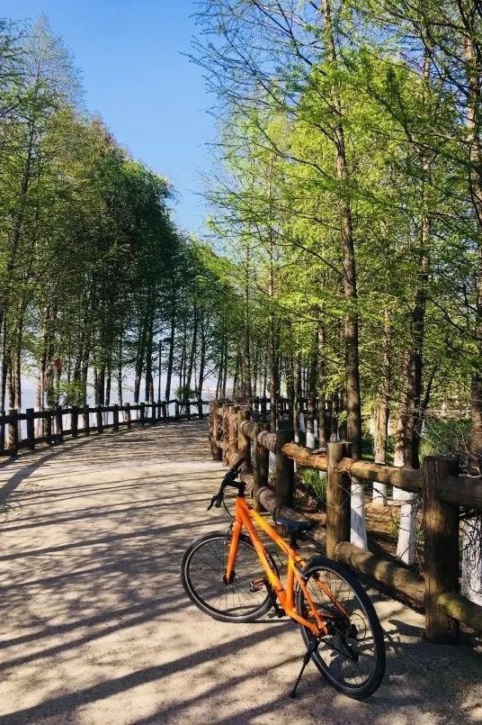 你可以骑行在湖畔,看飞鸟听水声闻花香