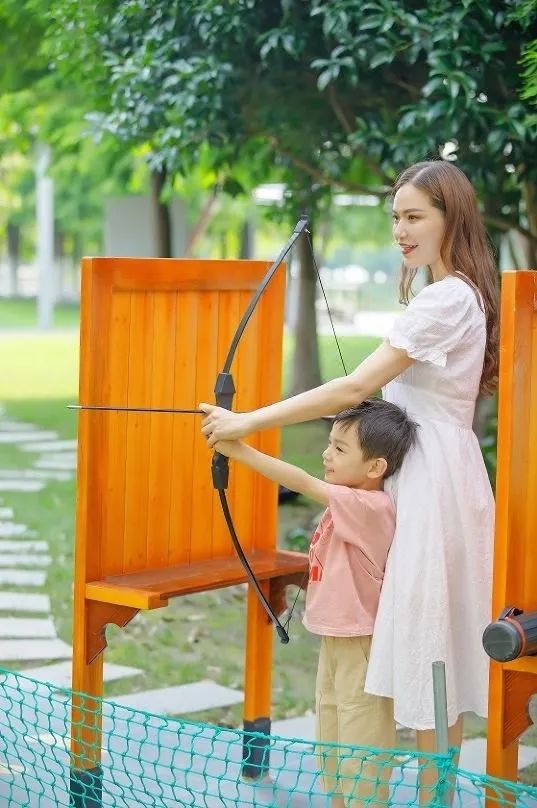 还可以与孩子在草坪上踢球、射箭...