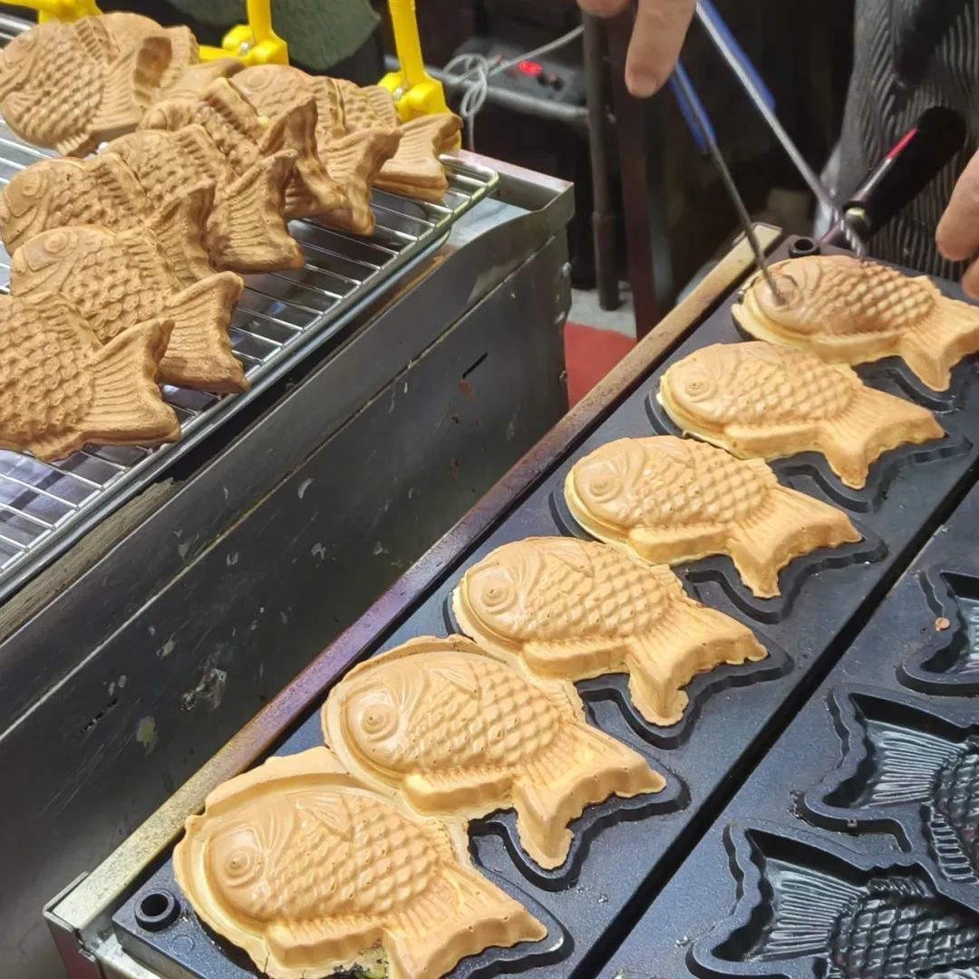 小鱼饼,跟鲷鱼烧是一样的,有抹茶,巧克力等味道。大家吃的时候注意不要被烫到哦!