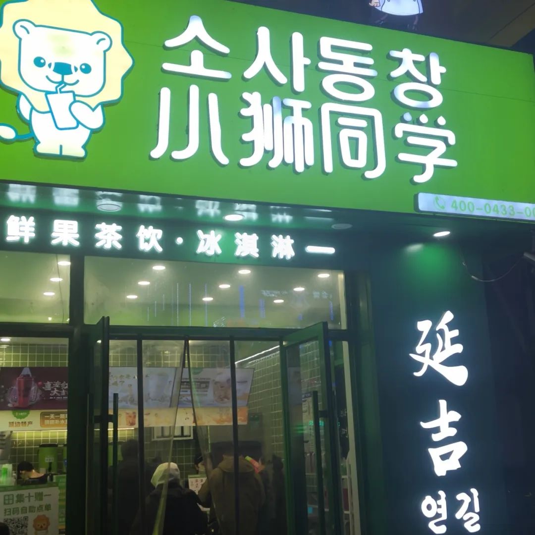 小狮同学,延吉特有的奶茶店,据说最开始是延吉大学的同学开的奶茶店,价格很划算,和蜜雪冰城差不多,冰淇淋很好吃,尤其推荐青提冰淇淋,很清爽。