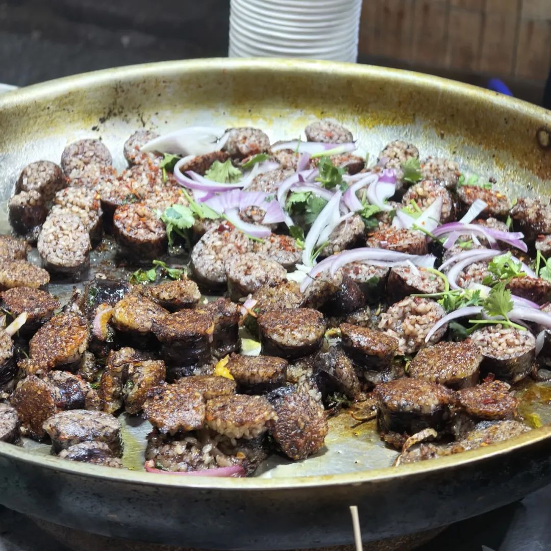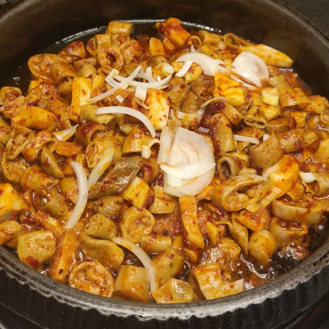 辣炒米肠,把米肠剪成段,用锅将两面剪的焦焦脆脆的,之后淋上独有的酱汁。
