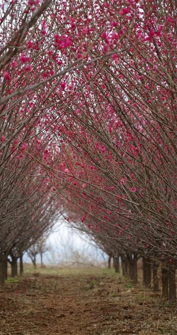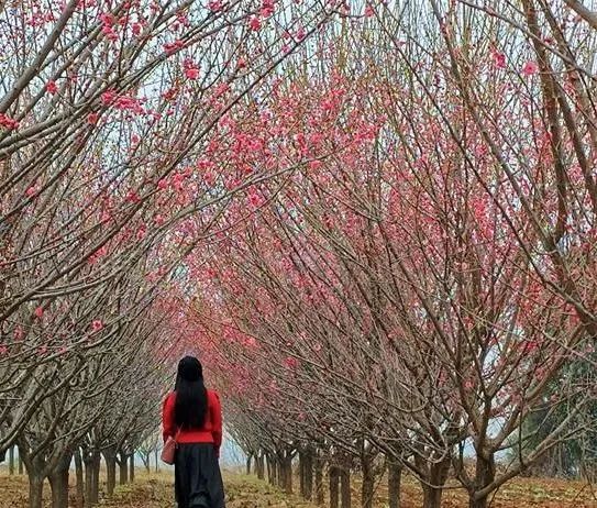原本,我们的目的地是张龙村那千亩红梅基地,但在当地朋友的推荐下,我们临时改变了行程,决定一探飞仙沟的究竟。车子穿行在蜿蜒的山路上,两侧的梅林逐渐映入眼帘。那层层叠叠的红云,比张龙村的梅花更胜一筹,让人忍不住惊叹连连。