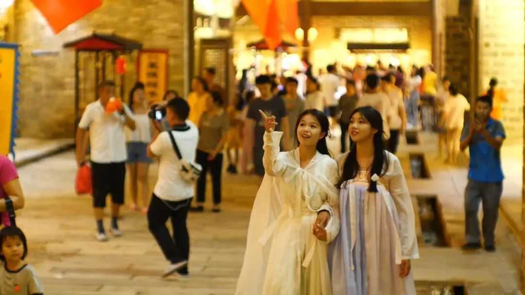“宝马雕车香满路。凤箫声动,玉壶光转,一夜鱼龙舞。蛾儿雪柳黄金缕,笑语盈盈暗香去。众里寻他千百度,蓦然回首,那人却在,灯火阑珊处。”在平安驿·客家民俗文化体验地,或三五好友身着汉服结伴成行,或家庭饭后闲逛出游,此等凉城美景,仿佛走进了诗词里的“江南”。