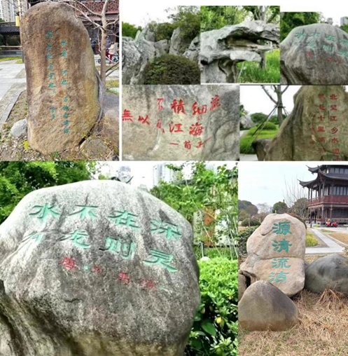 “百水园景区”是凤凰河所有景区中水文化最丰富、景点最多、亭台楼阁最多、绿化最好的地块。“百水园景区”用一百多平米面积以曲折形式按比例缩小,将泰州市的主要水系展示布置其上。最南侧是长江、最北边是兴盐界河,最西端引江河、最东侧増产河。四条泰州边界处河流怀抱泰州市域内近百条河流,这些河流东南西北交叉联结,组成泰州地区纵横交错“水网百水图”,构成了“水城泰州”的根基。游人来此处后可“一目了然”泰州市主要河流的名称、位置、方向、衔接等地理知识,起到了“观百水园景区知泰州市主要水系河流”作用。“水网百水图”标注从南向北河流是:长江/泰界河/天星港河/如泰河/古马干河/宣堡港/周山河/老通扬运河/新通扬运河/边城河/车路河/最北侧是兴盐界河(上述均为东西方向河流)。“水网百水图”标注从西向东河流是:引江河/ 南官河 /两泰官河/新曲河/中干河/西姜黄河/夏仕港/东姜黄河/最东侧是増产河 (上述均为南北方向河流)。一批斜行、短距离河流穿插连接于河流组成的水网中。水网交叉形成的网格间布置点石、树枝造型,点石上刻爱水、护水、节水及水文化短句。粗略计算,此园区标注有“河”流80余条,网格间点石、树枝造型30余处,大小碑石和石块100多块。其中荀子“不积细流无以成江海”、管子“水者,何也?万物之源也”、刘锡禹“水木在深,有龙则灵”等古代名家“论水”碑石让人感受“百水园”的丰富水文化,泰州才子储巏“北望江山水国中,帆悬十里满湖风”自豪为家乡“水国”喝彩楹联让人赞誉。“水网百水图”西侧临河建有:不舍亭、水国亭、春雨亭、载舟亭、上善阁、百水厅、化虹亭、将承亭等古色古香亭台楼阁,其中大多数建筑名称与“水”有关:上善若水、水国、春雨、百水、载舟、化虹。这些亭台楼阁、飞檐翘壁、回廊起伏、曲径通幽、亭廊相连,廊檐廊枋廊顶雕刻各种图案充满古今文化气息。回廊两侧设置凭栏坐椅供游人休息、观景、会友、纳荫。通凤凰河边回廊北侧有一亭,牌匾为古体难以辨认,我请教好几位游客才知是“将承”二字。“将承”意为“奉命承旨”,不知建此“将承亭”是奉谁之命?承何旨意?有何典故?凤凰河景区河水清澈,两侧绿树成荫,是游客赏景、健身、休闲、垂钓好去处。我尊敬的老领导原市政府副秘书长、凤城河风景区管委会主任、旅游局局长刘宁先生曾对我说过,泰州市政府每年均会定期向凤城河、稻河、凤凰河等泰州河道中投放一定数量鱼苗、螺丝、蚬子苗等水产苗,促进水产养殖,吸收亲水游人、钓客、采螺丝者兴趣,增加游客密度,供市民垂钓采螺。此举措“花钱引客、促进旅游、惠利市民”值得称赞。百水园向南到东城河“三忠桥”地段是一块二三百米长的高坡,高坡上植满密集的香樟树,树杆高耸浓荫蔽空,是凤凰河景区中树木最多的一段“森林区”。森林区最南向阳坡上竖立石碑“十里凤河十里绿