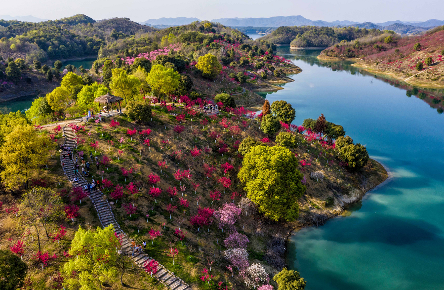 早指定地点集合,前往阳光照耀29度~花源谷(含门票),花源谷位于西海腹地,占地8000余亩,水位最深处60-70米,平均水位45米,大小岛屿数百座,大气负氧离子含量15万个/立方厘米。乘船(船票+观光车100元必须自理)登岛观赏万亩桃花,桃花岛位于阳光照耀29度假区花源谷景区,种植有1万多棵各类品种的桃树。桃花岛桃花品种珍贵稀有:开得比樱花灿烂的满天星;一棵树上两种颜色的垂枝桃;花像菊花瓣的菊花桃;最珍奇的算是人面桃,它的花可以从白色渐渐变成红色,犹如少女初见意中人脸色的变化。每到三月底至四月初,上万棵桃树竞相开放,艳丽动人,地上铺满了洒落着的桃花花瓣,就像下了一场桃花雨。后乘船前往玉兰洲欣赏玉兰,此时的紫玉兰、白玉兰清新淡雅迎风摇曳别具风格。