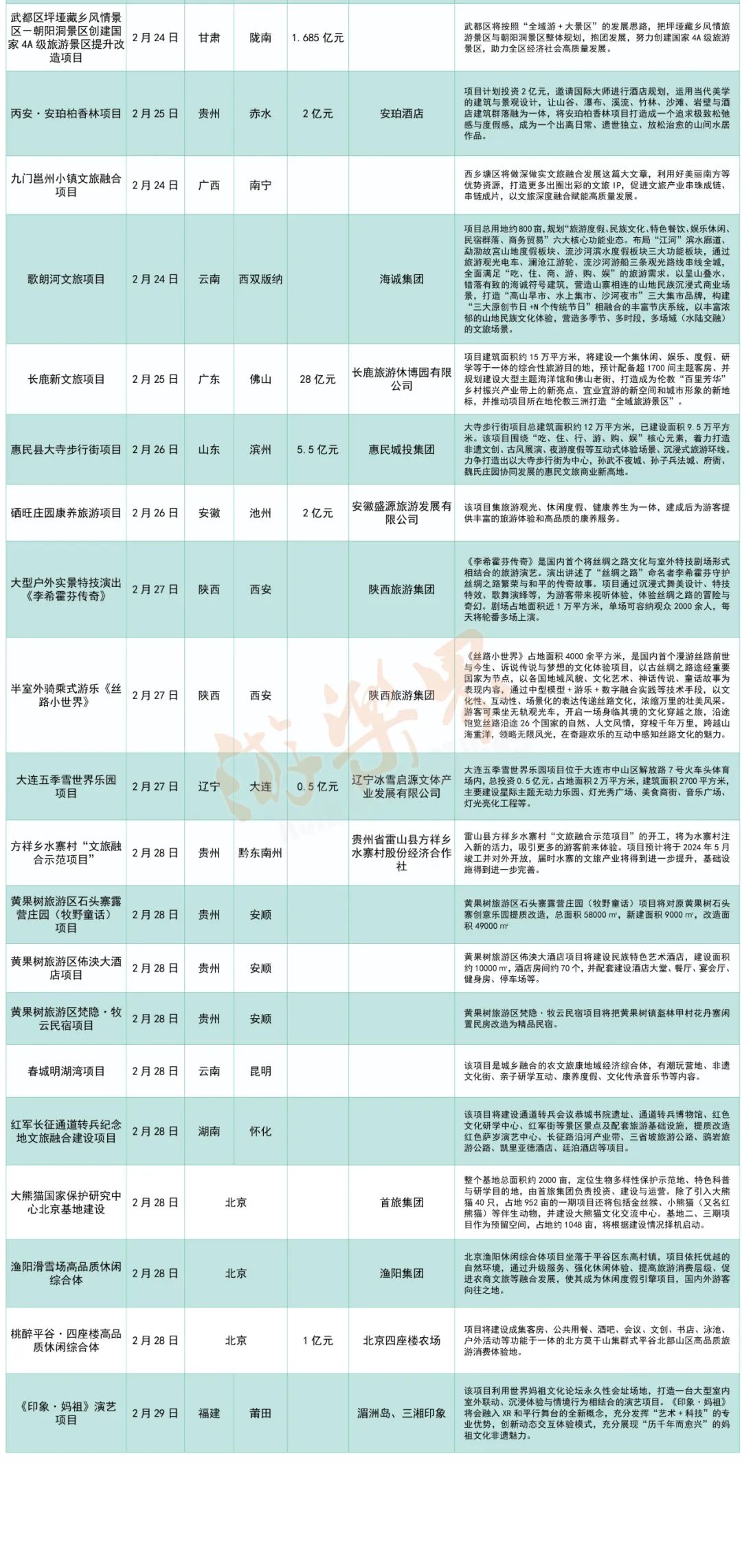 2月新开工文旅项目