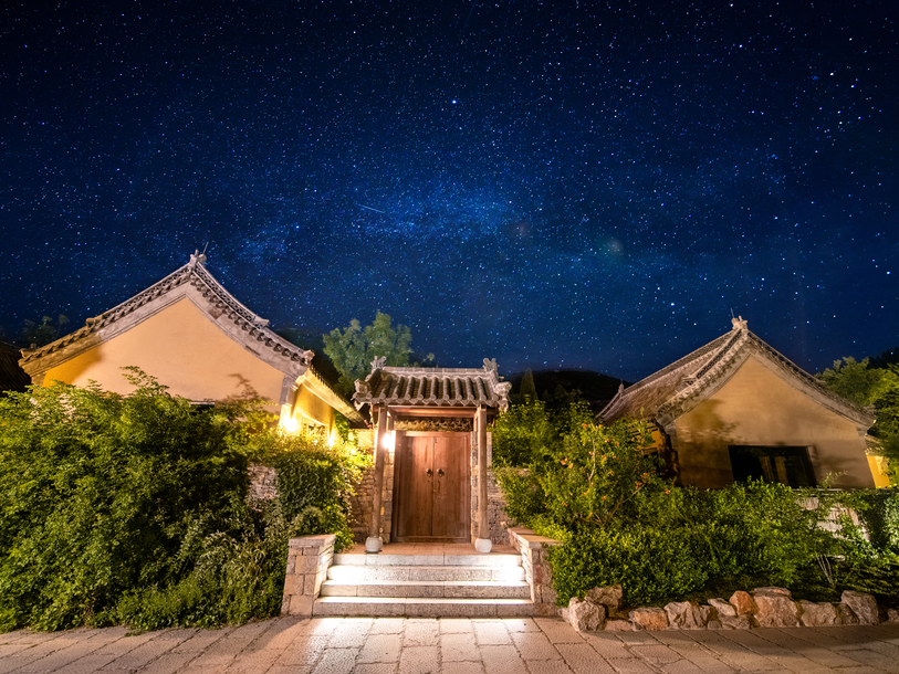 朴宿·龙湾良舍民宿位于济宁市泗水县等闲谷艺术小镇内,是集高端旅宿、禅茶体验、音乐文化、鲁菜品鉴于一体的山林自然景致主题度假民宿,民宿整体设计充分的尊重生态,尊重自然,最大程度体现了所在山村的在地文化,给客人更多的户外空间。建筑以当地的原石和夯土为主材,黑色陶瓦、柳条围栏、青草依依,古树繁茂。沿老石板铺就的小道拾阶而上,可看流水潺潺,闻鸟鸣山涧。