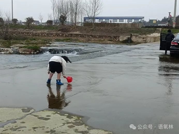 看见一处漫水桥,有人在洗衣,洗车。有人洗车,兼带孩子玩水。河水清凌凌的,俞老师说,我们也把车洗洗吧。没有准备洗具,一块抹布,不一会功夫,她就把车洗得锃亮。