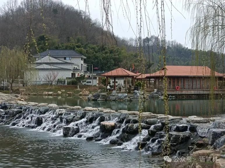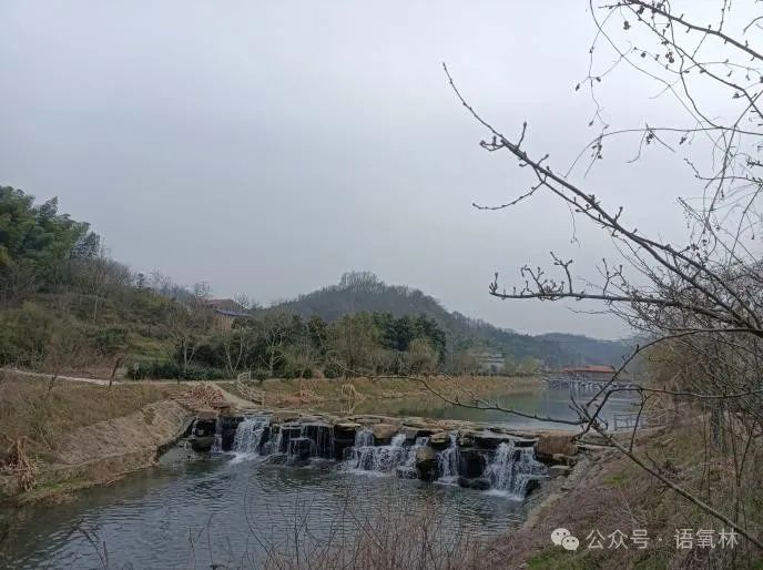 街道后的小溪——我想就是华溪涧吧,本来应该寻常,但经略加改造变成了可以打卡的风景。从实践广场到云舒别院一段大约1公里的距离,水态却多姿多样。有的地方宽阔,水面阔大,水色碧绿,俨然一座小型水库;有的地方未加改造,原汁原味,呈自然形态,是山脚的溪沟;有的地方用石头垒起了堤坝,绿流而下,瞬间变成了雪瀑,本来静若处子,瞬间动若脱兔;有的地方垒起的漫水坝齐齐整整,坝下溪流,像是小溪洁白的围脖。