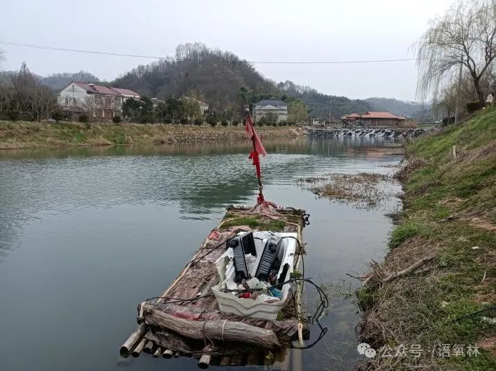 无论水态如何,溪水要么清澈,要么洁白,水面总是干干净净的。在河面上,我发现一条了竹筏,上面有捡拾的垃圾,令我想起了荣获全国第二届十大“最美基层河湖卫士”称号的我县巡河人员李其柱,自2018年起志愿守护家乡的绿水青山,自制竹筏义务巡南港河也就是这条溪河的故事。青山绿水是需要人取呵护的。
