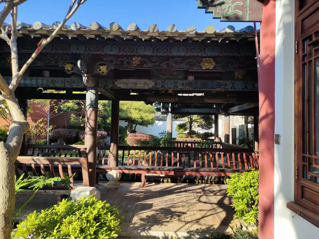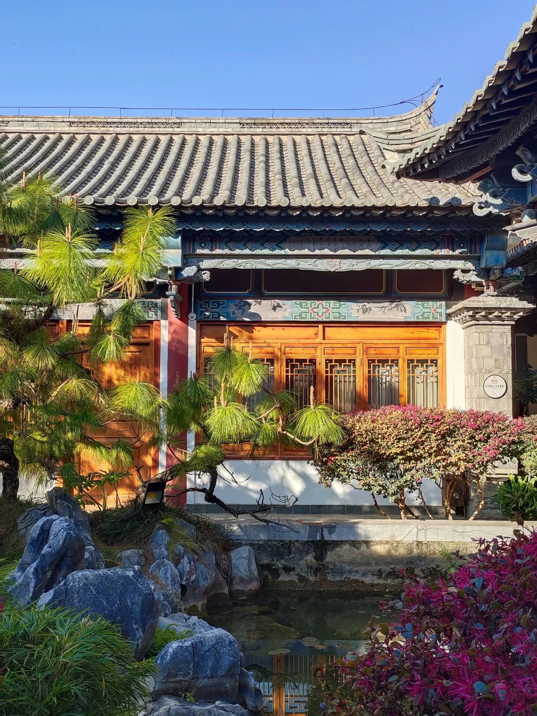 房间分别位于院落之中,松院以青松为主,墨香堂以盆景、书画为主,竹园以绿竹为主,一条雕刻有建水特色彩绘的木质长廊连通所有院落,恰似将苏杭园林搬到了滇南。
