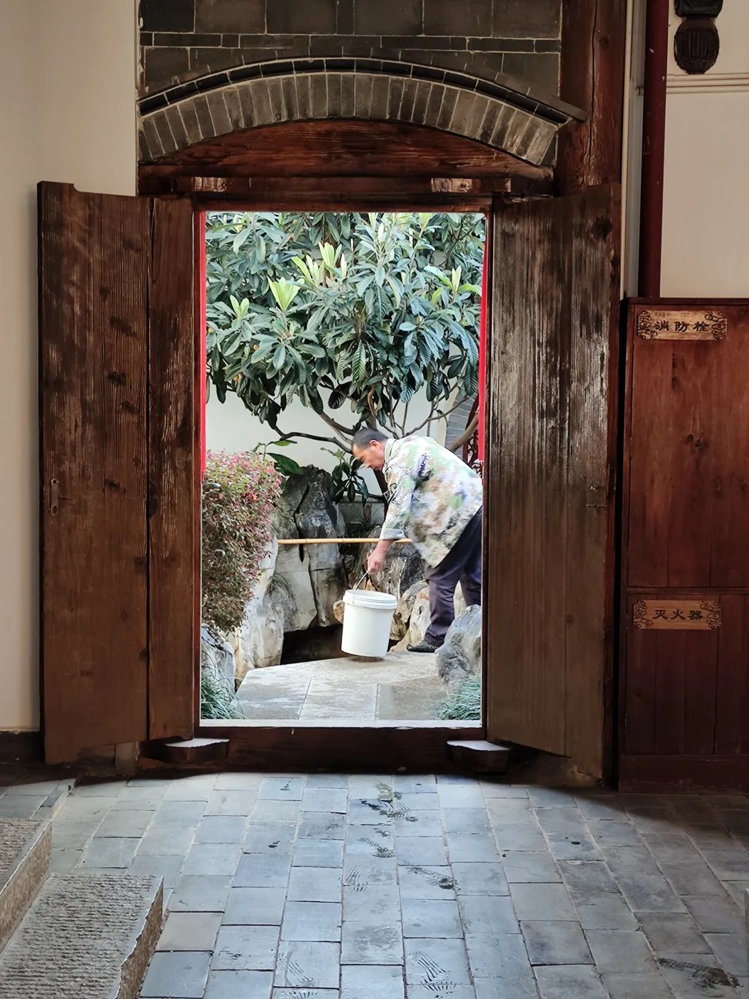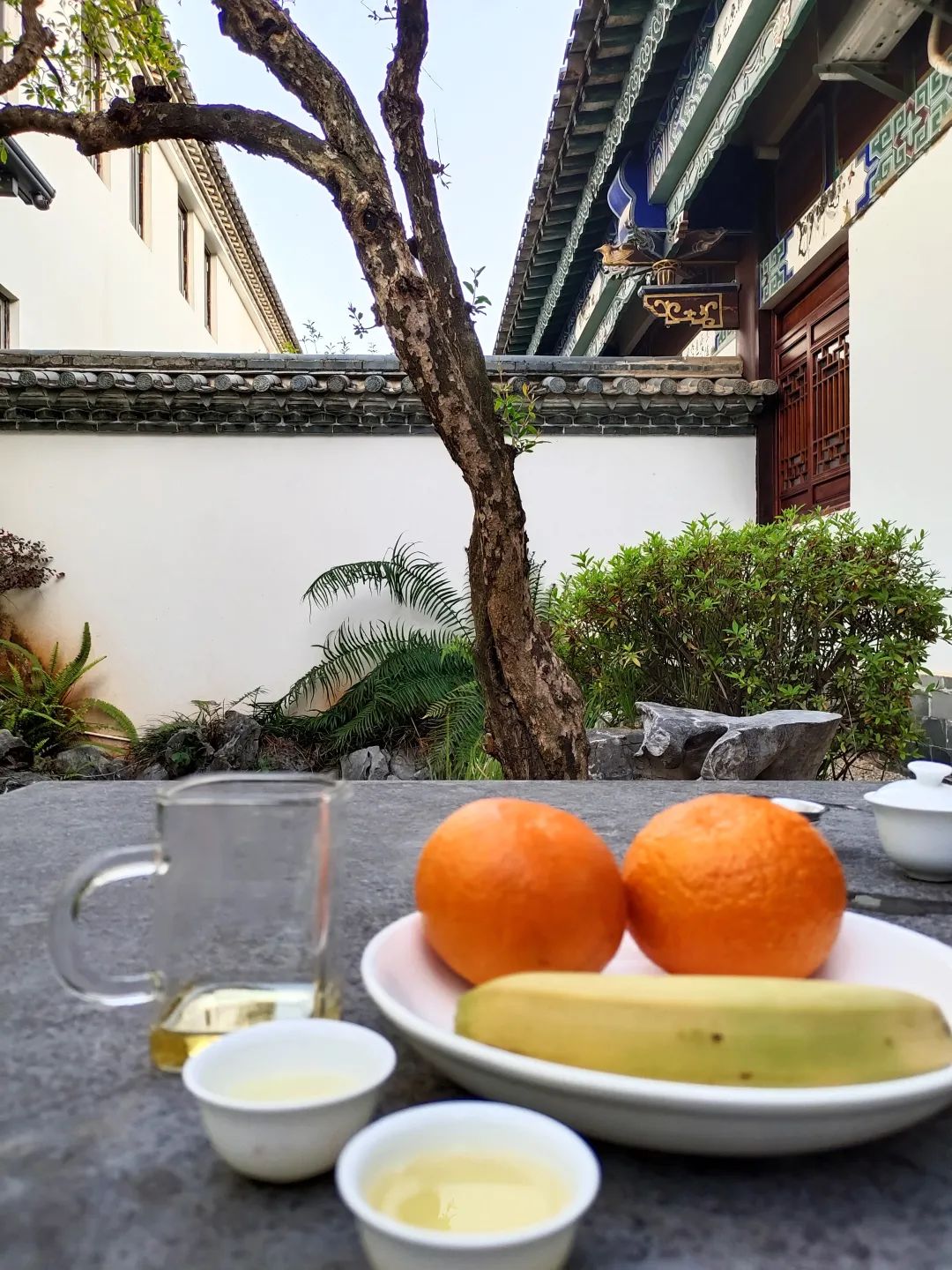 下午、傍晚和早晨,小院的光线不同,喝茶的感觉也不同。(下午阳光太烈,不宜在院子里饮茶,宜出门逛逛老城,看看朱家花园、文庙之类老建筑,感受古城的历史。)