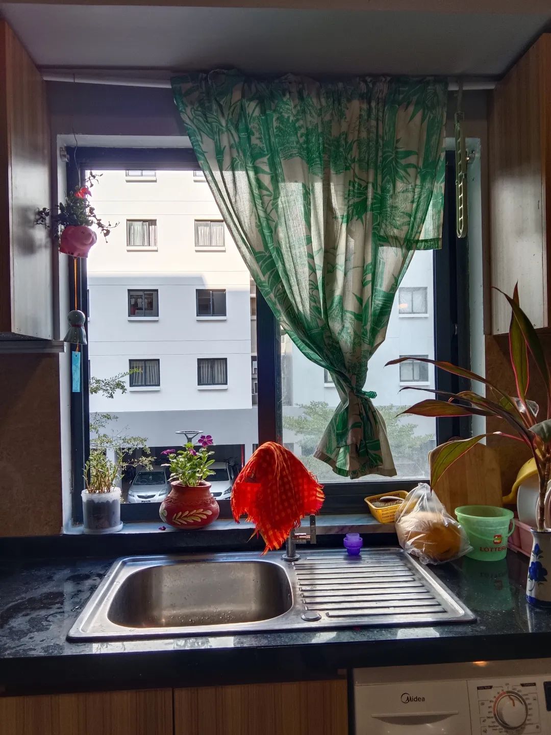 搬进新的公寓,收拾东西,摆弄花草,慢慢得就更有了家的氛围。除了厕所的排风气的噪音大,且自己是不能把它关了,其他都非常好。做饭、洗漱都是面对着窗外,虽然窗外是另一栋楼,但比之前炒菜做饭洗衣服都面对着墙壁,要好多了,虽然之前的公寓是两厅一室,面积很大。