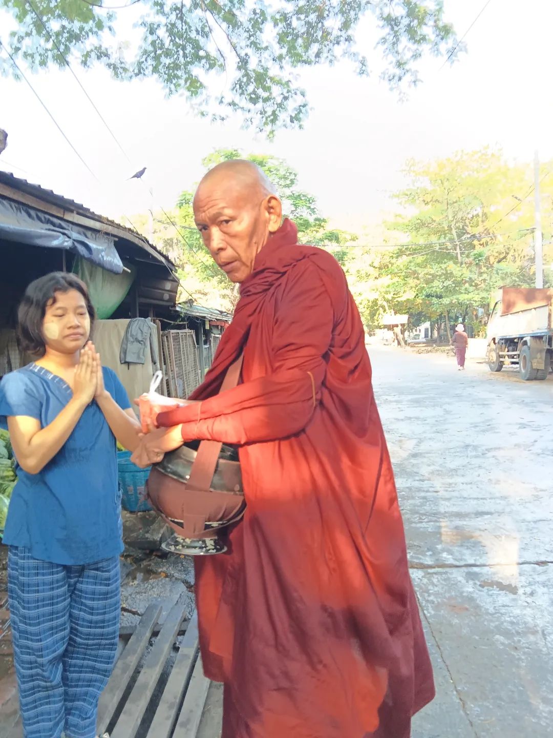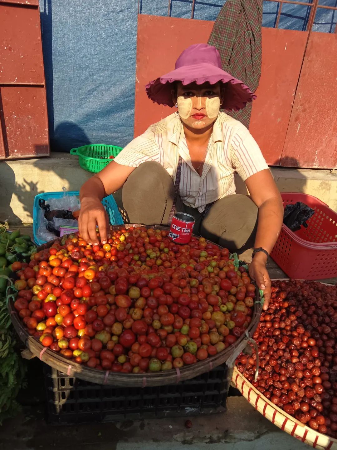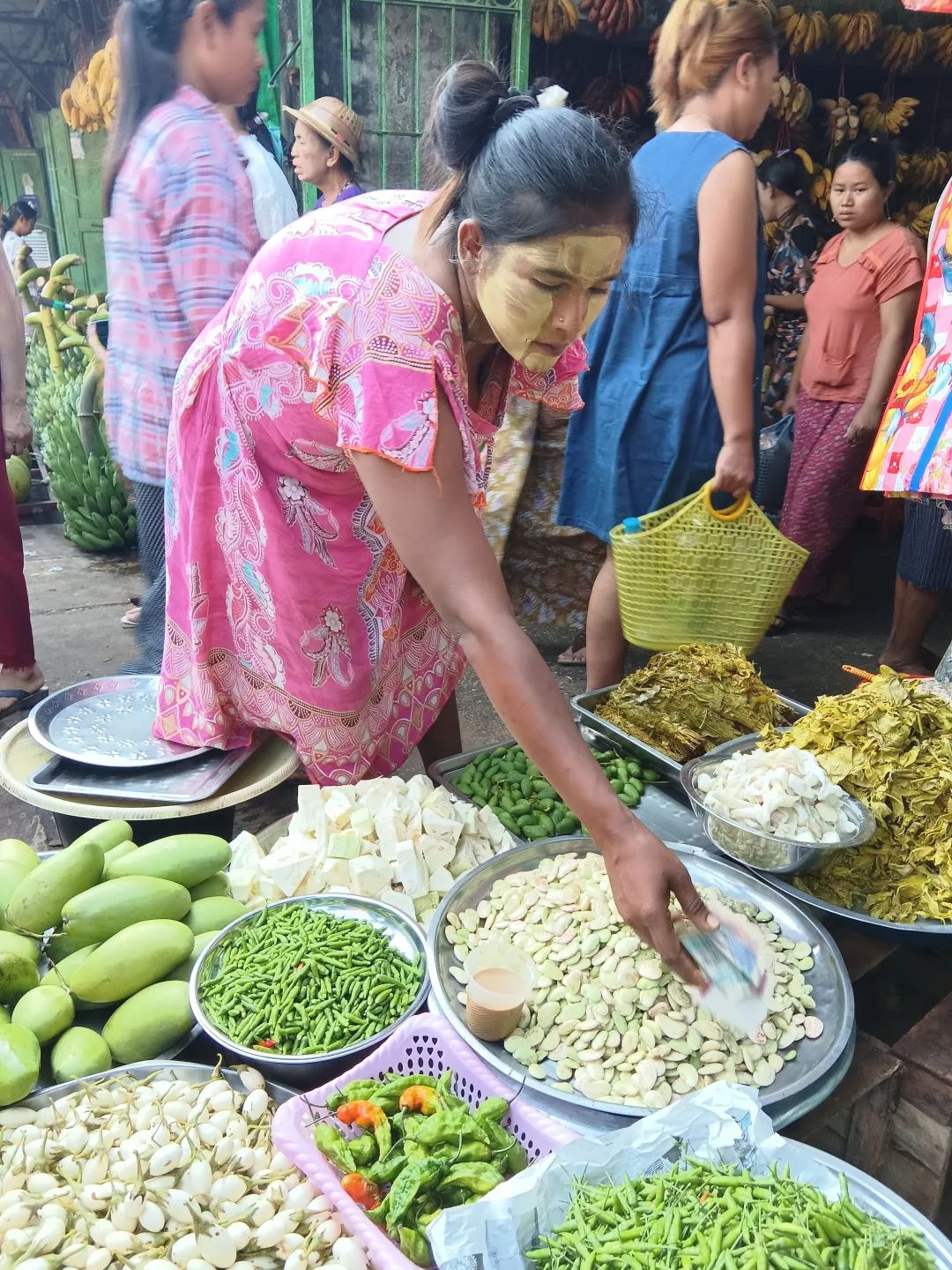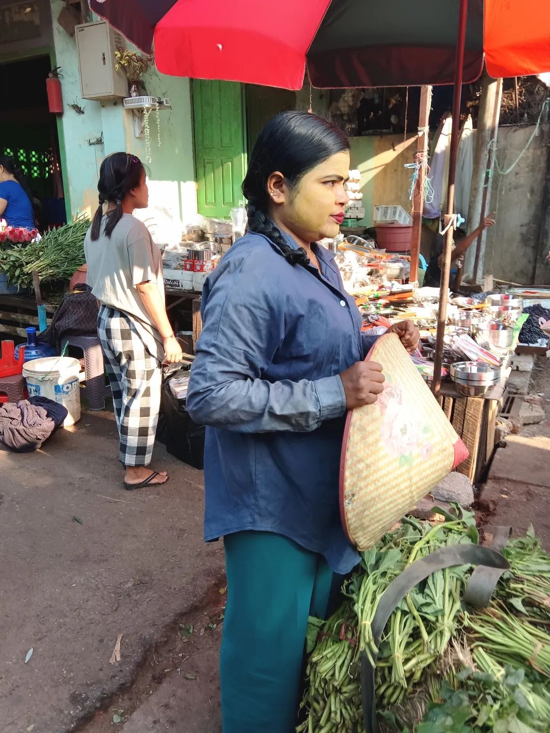 吃饱喝足,就去逛市场。五颜六色,人来人往,让我好兴奋。两个不急不慢,慢慢走,慢慢看。我则随机抓拍。当地人非常好,直接对着他们拍也不恼怒。刚准备进入市场,就看见一个大叔,膀子上纹着花纹,肩膀上扛着一大捆甘蔗。阳光此时恰好,我就跟着在他后面,不仅拍了照片,还录了视频。