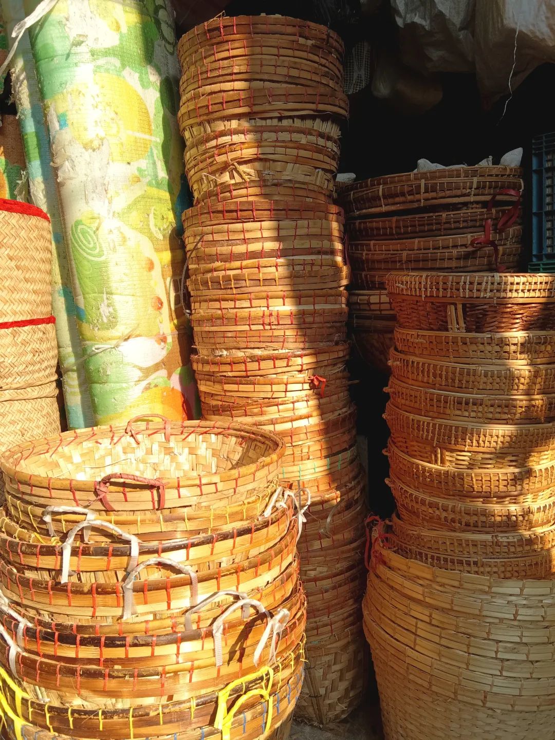 我们边走边拍边看,最后到了卖布的地方,我想买床单。我的床是1米8的,不论是对我的房间,还是我自己都太大了。如果直接买床单,我觉得会比较贵,且也不想添置太多多余的东西。于是我就买了两块布,花了九千,来当做铺盖。稍微折一下又可以当做桌布或者窗帘,真是多用又便宜。